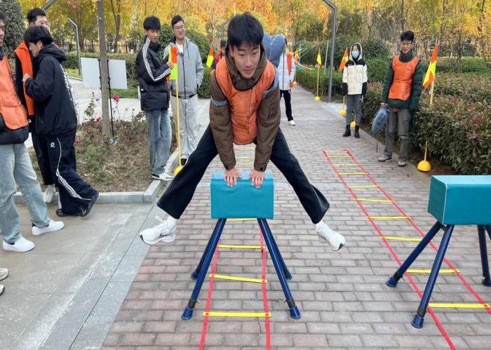 紧接着,同学们来到了红色体能活动环节。行进中,模拟“翻山越岭”“四渡赤水”“飞夺泸定桥”“过草地”“爬雪山”“巧过雷区”“炸碉堡”红军长征的活动、战役、险阻等,设置层层闯关任务,通过把经典红色文化与多彩运动游戏有机结合,让同学们在游戏中体验百折不挠、永不言败的革命精神。