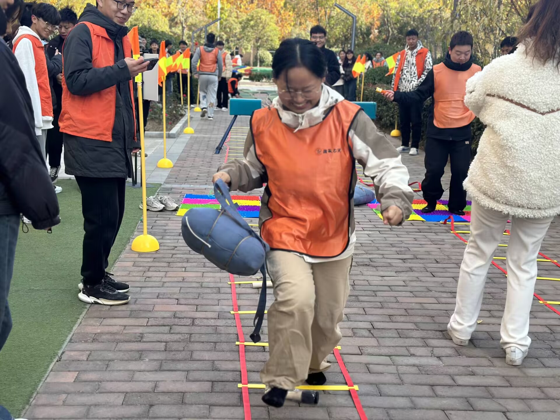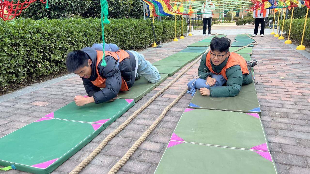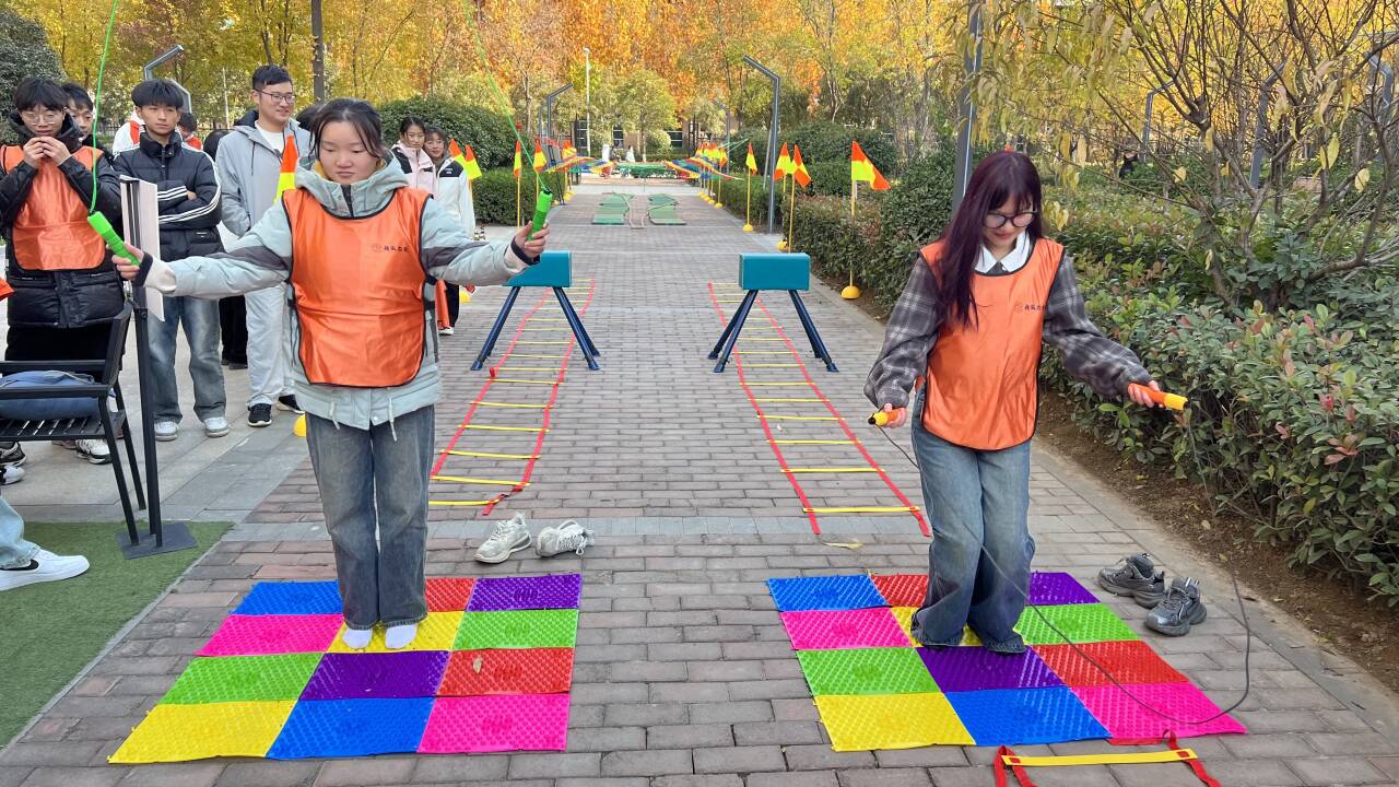 紧接着,同学们来到了红色体能活动环节。行进中,模拟“翻山越岭”“四渡赤水”“飞夺泸定桥”“过草地”“爬雪山”“巧过雷区”“炸碉堡”红军长征的活动、战役、险阻等,设置层层闯关任务,通过把经典红色文化与多彩运动游戏有机结合,让同学们在游戏中体验百折不挠、永不言败的革命精神。