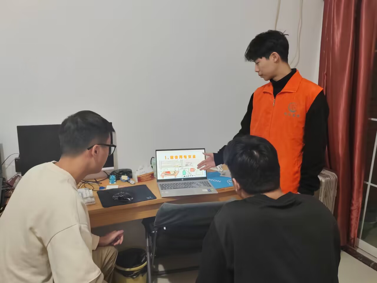 12月1日—4日,“精诚书院学生思想引领轻骑兵”宣讲团成员分别深入平原、新乡两校区学生宿舍开展“轻骑队伍进宿舍,安全知识入心间”宣讲活动。本次宣讲采取理论、案例、学生自制视频三结合形式向同学们讲解宿舍消防安全、用电安全、防诈财产安全、人身安全、校园骑行安全等方面内容。同时,宣讲成员还对宿舍中存在的安全隐患问题进行了排查,提醒同学们注意用电安全,不要在阳台、安全出口堆放杂物和易燃易爆物品,呼吁同学们树立安全防范意识,遵守校规校纪,自觉遵守宿舍安全管理规定,努力营造温馨、和谐的宿舍环境。