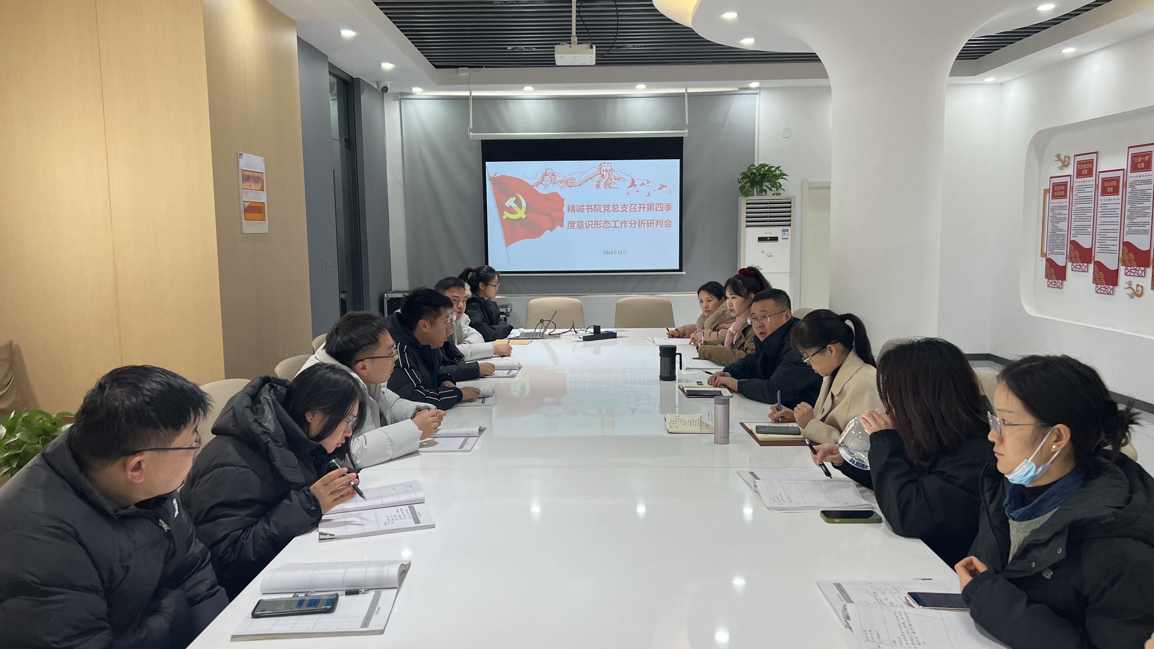 12月14日,精诚书院党总支于党员活动室召开第四季度意识形态工作分析研判会,本次会议由精诚书院党总支书记张新主持,全体教职工参加。