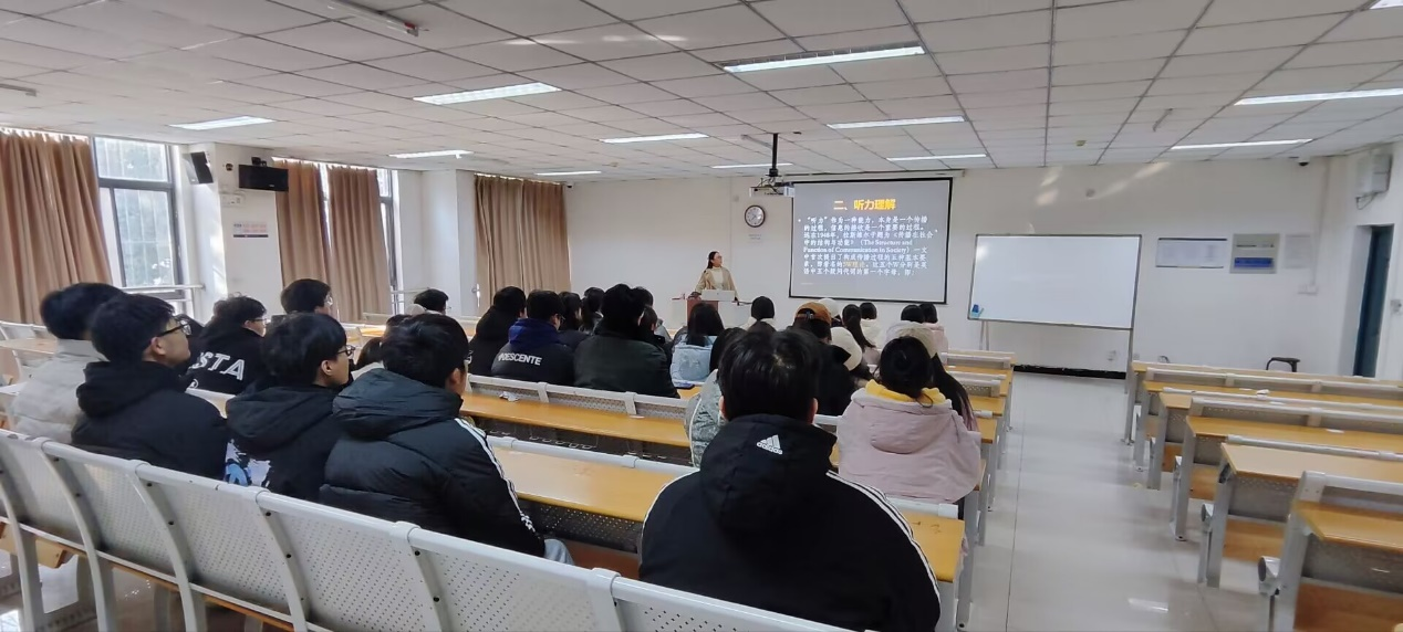 12月20日,学业导师仝庆带领2023级本科康复治疗学36班全体同学在谨学楼C103教室开展了大学英语四六级专题讲解——听力能力提升及解题技巧。本次指导内容主要分为3部分。第一,介绍了大学英语四六级中听力的基本题型以及时间安排。第二,介绍了各类听力题型的做题技巧以及方法,答题步骤。第三,提醒同学们在听力考试中的注意事项,以及注重平时听力练习的方法及过程。最后,强调临近期末,做好英语课程的复习,做好考试复习计划,圆满完成考试任务,取得优异成绩。