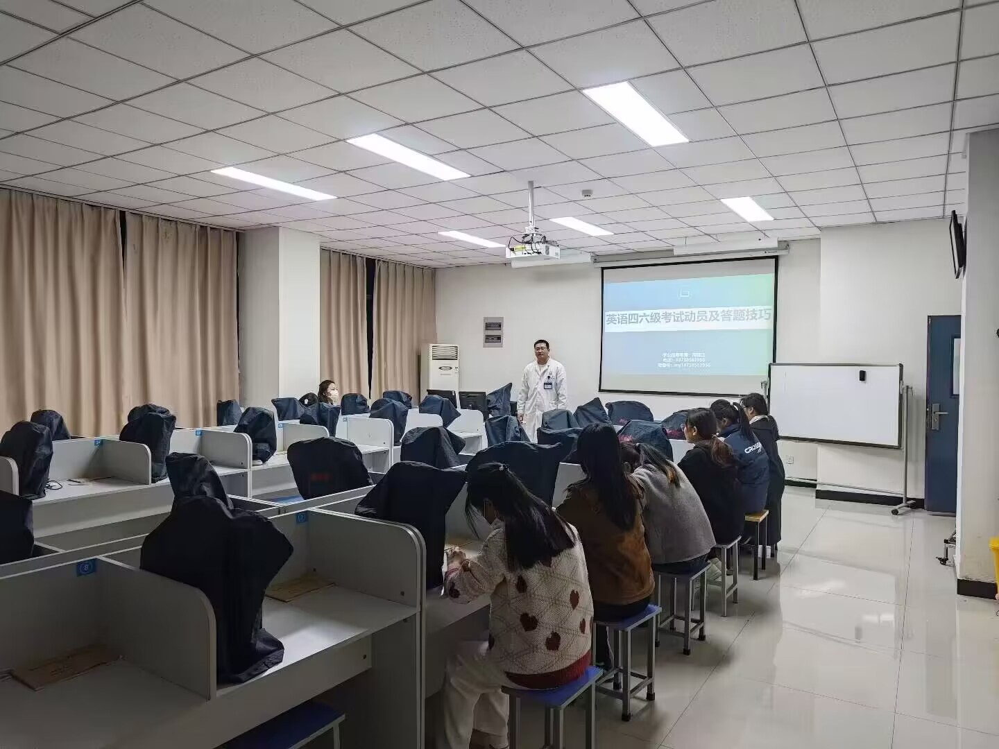 12月7日,学业导师贺新平带领2022级医学影像技术专业60、61、62班医学影像技术专业进行了备战英语四六级讲座。贺新平将四六级考试时间的安排、试卷结构、分值比例、以及如何备考通过PPT的形式,做了详细的指导。并提醒学生带好证件和文具。