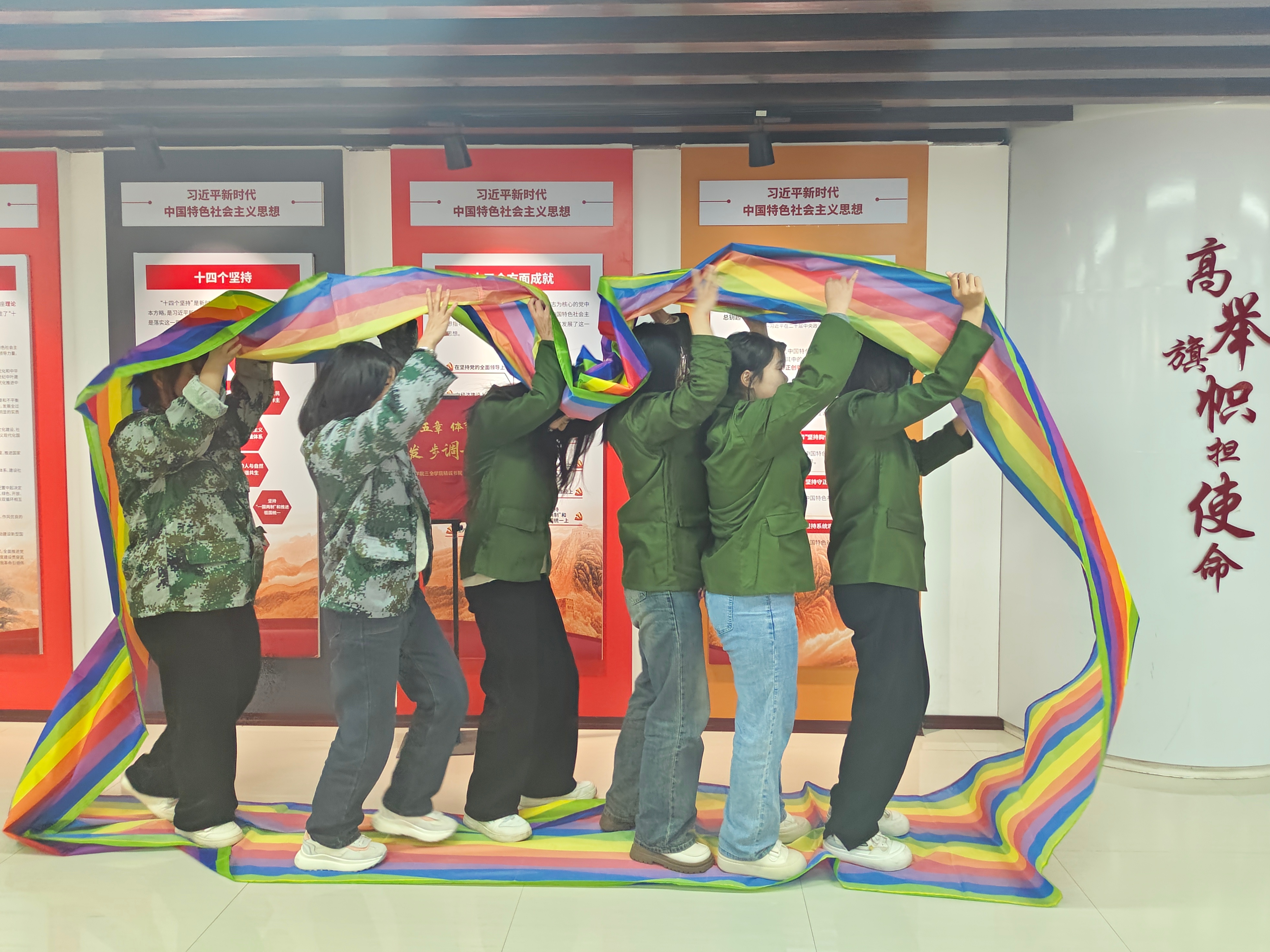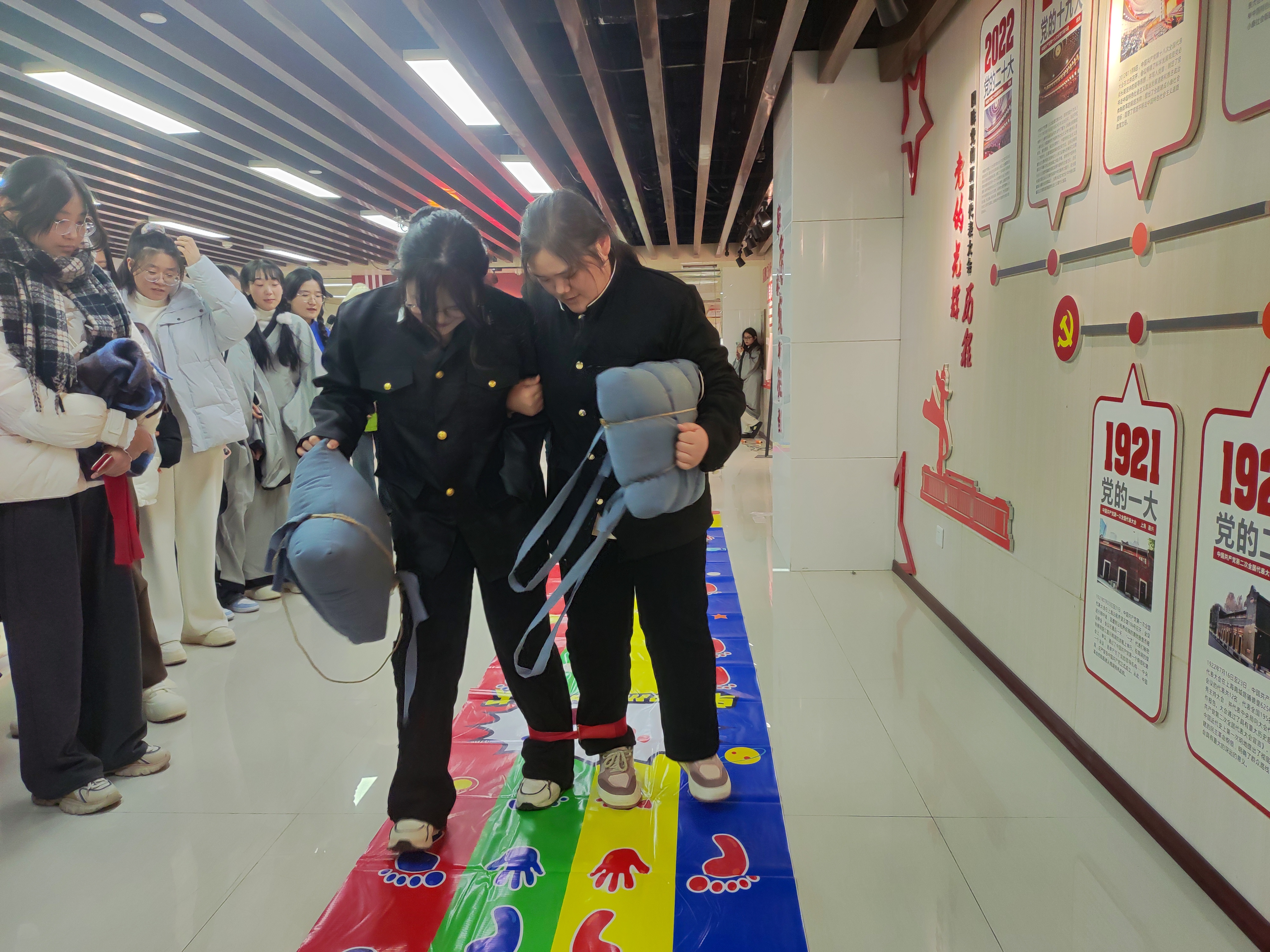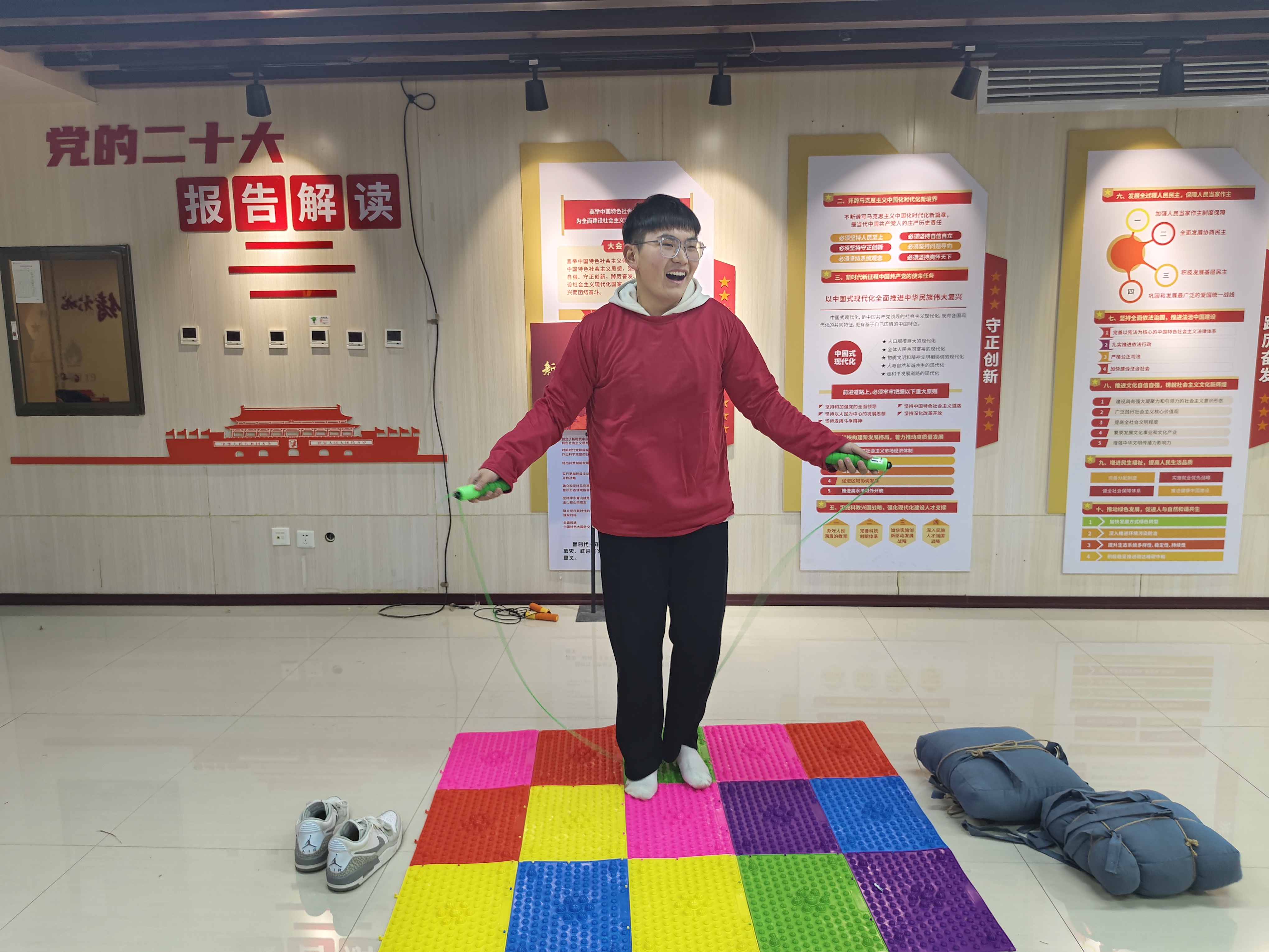 在誓师大会的庄严氛围中,同学们开启了这场特殊的红色教育之旅。他们穿越“强渡乌江”“翻山越岭”“四渡赤水”等历史关卡,通过钻、爬、攀、跑等挑战,深刻体验了中国红军“从弱小走向强大,从苦难走向辉煌”的壮丽历程。在游戏过程中,面对重重障碍,“管他对不队”的队员们毫不退缩,咬紧牙关,在指压板上一次次飞跃。两人、单绳、十个!两位柔弱的姑娘此时仿佛没了痛觉,她们眼神坚毅,协调冷静。两人三足、同手同脚更是考验了他们的团队协作和互助能力。通过这一系列游戏,同学们展现出了团结协作、敢于拼搏、永不放弃的精神。