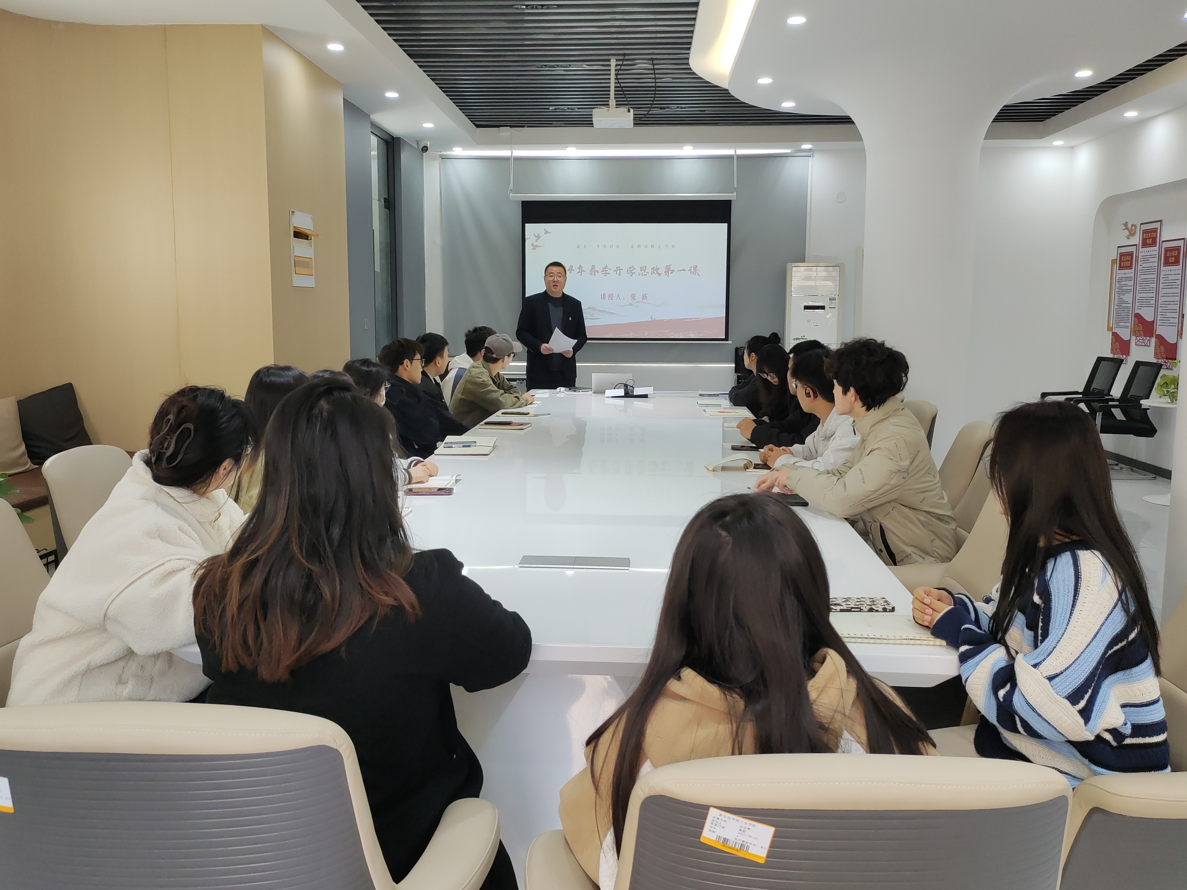为深入贯彻习近平新时代中国特色社会主义思想和党的二十大精神,全面落实《关于推进大中小学思政课一体化建设的实施意见》的工作要求,引导学生以良好精神风貌投入新学期的学习生活,3月26日,精诚书院党总支于党团之家开展以“最是一年春好处,奋楫扬帆正当时”为主题的春季开学思政第一课讲座,由精诚书院党总支书记张新主讲,30余名学生代表参加。
