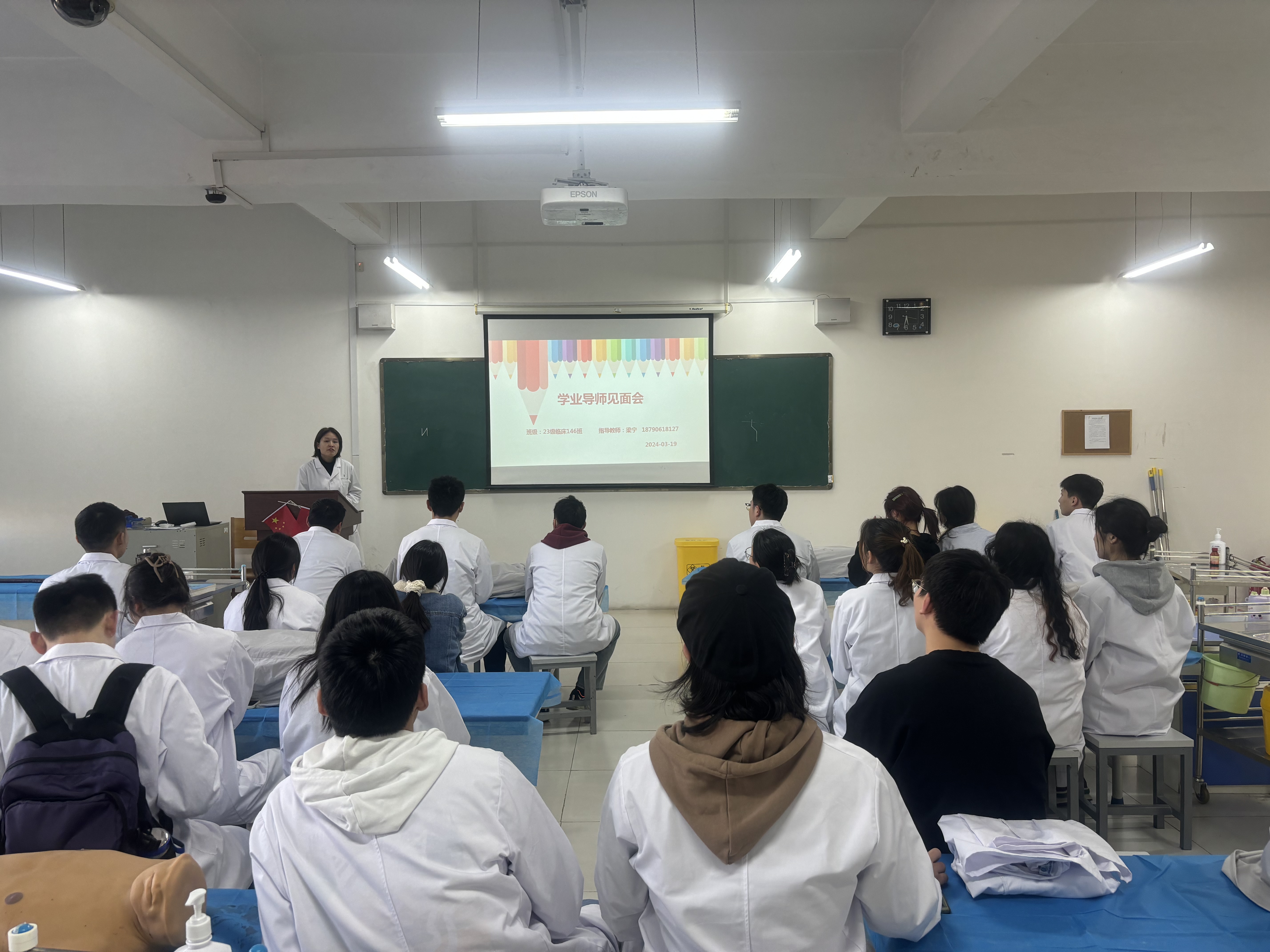 3月20日下午,学业导师梁宁组织2023级临床医学146班本学期的学业导师见面会。首先,梁宁提到新学期刚开始,希望同学们做好时间规划,生活不只是学习,更要做一些兴趣爱好的培养。其次,梁宁老师提到本学期开设的课程都是对执业医师和考研十分重要的专业课,上课专注听讲是事半功倍且简单易行的学习方法。有考研计划的同学更要在此基础上深挖重要知识点,为以后考研打好坚实的理论基础。梁宁还提到河南省社科联立项的截止时间是4月底,鼓励有科研爱好和追求的同学参与立项。最后,梁宁老师解答了几名同学关于科研方面的问题,鼓励同学们积极参加科研立设,合理利用学校丰富资源,培养自身的数理化思维逻辑,提高创新思维能力。