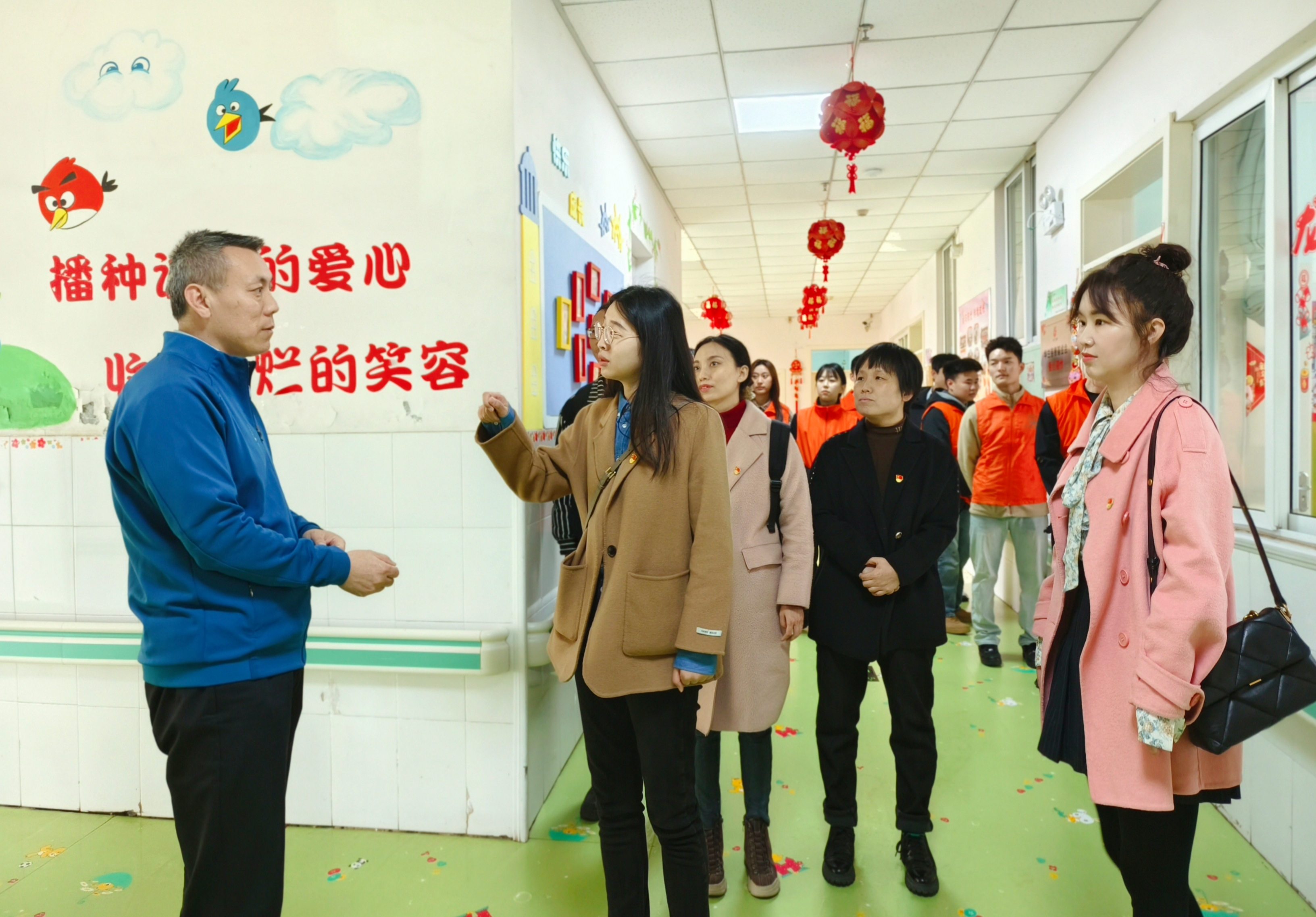 在福利院工作人员的带领下,志愿者们依次参观了康复治疗室、手工室、活动室等功能区域,详细了解了院内养护、医疗、康复、教育、社会工作等标准化建设情况。当看到教室里的孩子主动的为大家“比心”、挥手和击掌时,志愿者刘书恺动情地说道:“这是我第一次来到福利院,看到孩子们小小年纪就在逆境中自强不息、充满朝气的精气神,真的为他们点赞!”