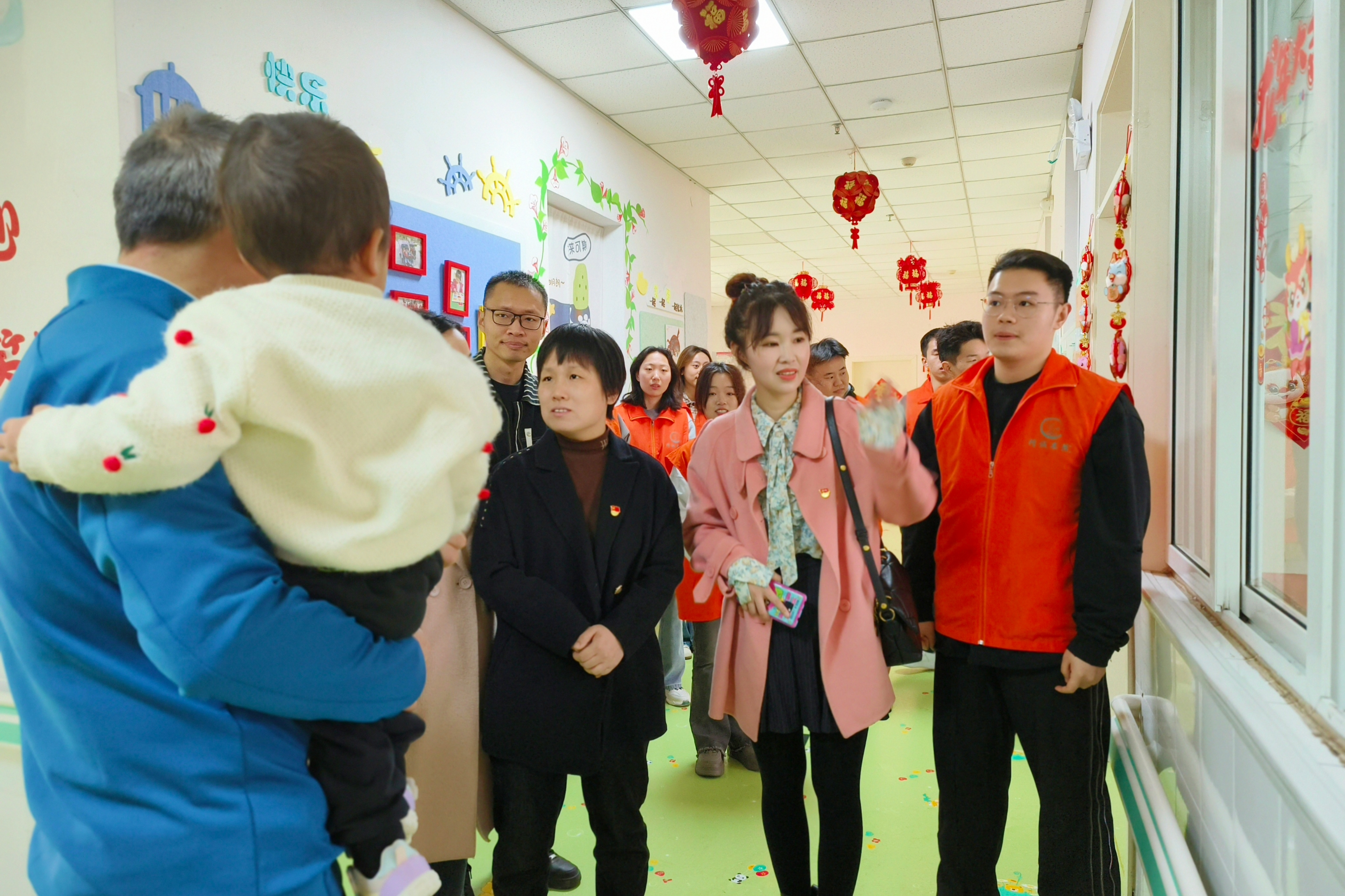 在福利院工作人员的带领下,志愿者们依次参观了康复治疗室、手工室、活动室等功能区域,详细了解了院内养护、医疗、康复、教育、社会工作等标准化建设情况。当看到教室里的孩子主动的为大家“比心”、挥手和击掌时,志愿者刘书恺动情地说道:“这是我第一次来到福利院,看到孩子们小小年纪就在逆境中自强不息、充满朝气的精气神,真的为他们点赞!”