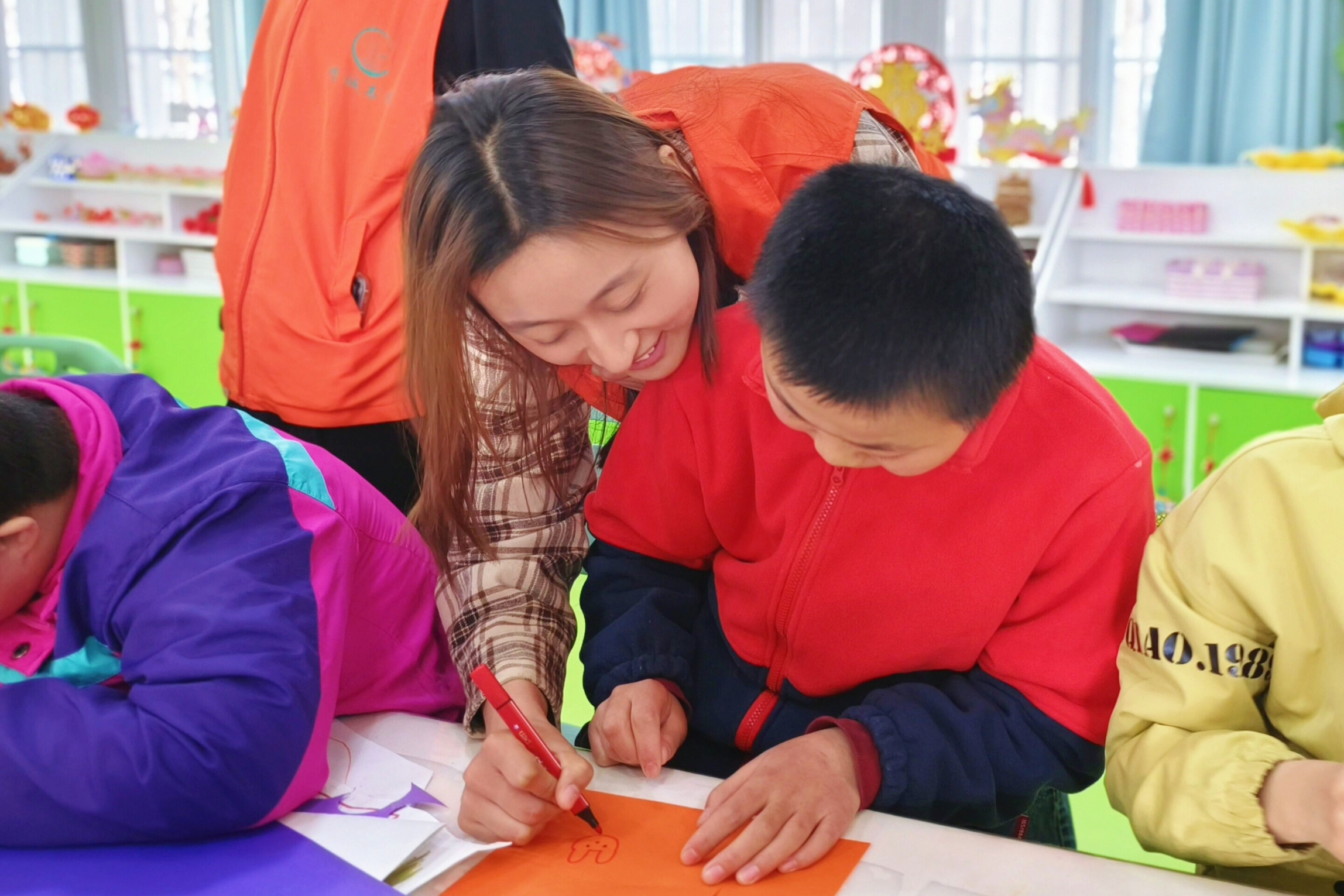 “小兔子爱吃什么啊?试试画一画”“拼凑魔方的时候要试着用你的食指,要十指齐用”随后,志愿者们针对性地设计了感知小课堂,通过视觉、嗅觉、触觉等感知的课程设计,调动小朋友们的兴趣和注意力,帮助他们在多个感官的刺激下获得更多的学习与发展机会。除此之外,志愿者们还策划了各种富有趣味性的活动,让孩子们在轻松、快乐的游戏中,学会了宣泄情绪、展现真我、释放压力,现场洋溢着和谐与美好的氛围。“作为一名医学生,我们更要不断提高自己医学方面的技能,打好扎实的基础,拯救更多身处于福利院的残疾儿童,救助更多所需要救治的孩子们。同时更应该树立高度的责任感和使命感,为祖国医药事业贡献自己的一份力量。”李凯悦说。