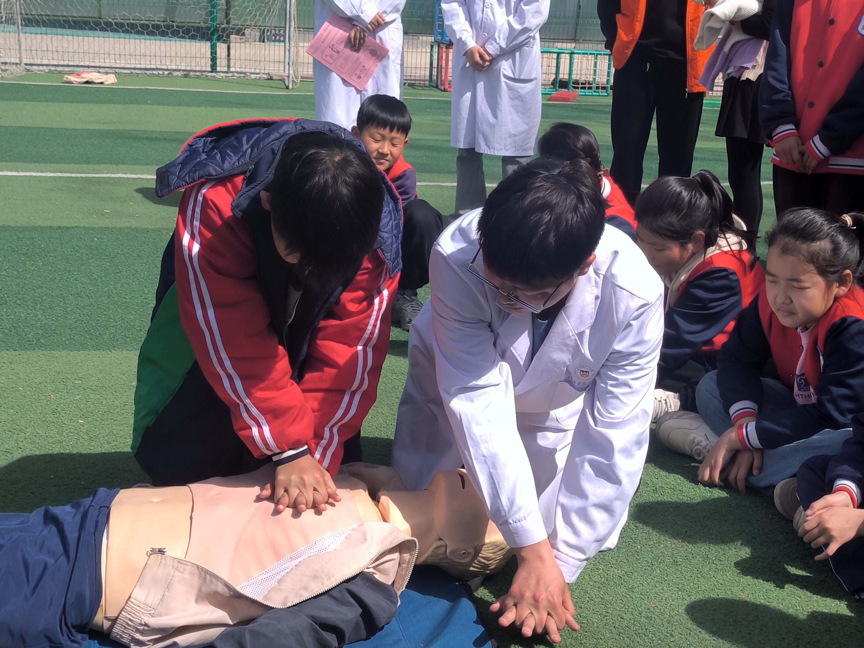 宏伟小学急救知识培训现场,宣讲员赵一栋为5年4班的同学带来详细的心肺复苏的操作流程,技能操作员杨亚龙带领同学们学习心肺复苏(CPR)的操作步骤;为了让学生更好地掌握急救技能,郭皓研进行了心肺复苏模拟演练;在示范操作结束后的提问环节,同学们个个求知若渴,踊跃举手,他们问到:“什么情况下需要心肺复苏呢?还有AED是什么呀?”急救培训小组一一为学生进行详细了解答。讲解结束后,小朋友踊跃参加实操,亲身体验急救操作的流程。随后,刘旭为大家生动讲解了海姆立克的操作方法,向小学生们传授了基本的急救知识和技能,此次培训得到了师生们的热烈欢迎。通过培训,同学们不仅学到了实用的急救知识,还增强了自己的自信心和责任感。他们表示将把所学的急救技能传播给更多的人,共同为校园安全贡献力量。