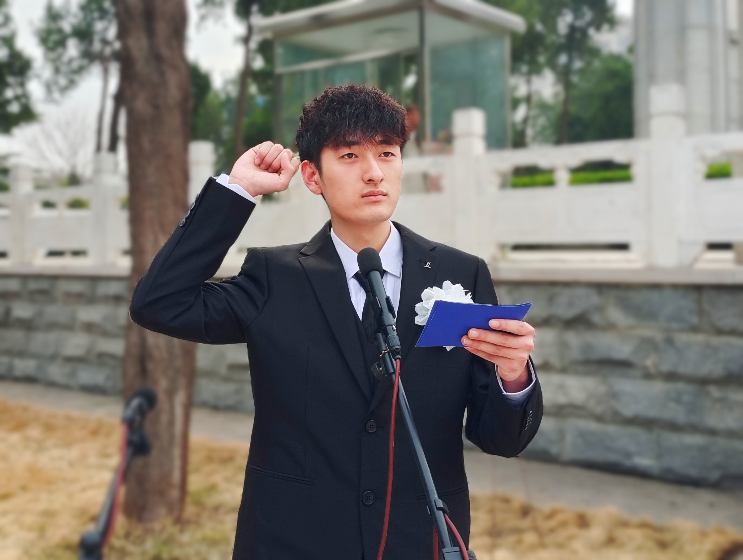 学生代表吴康逸发言:“一张张照片,一件件遗物,一座座雕像,我们仿佛从中看到了在血雨腥风的革命岁月中奋斗的英雄先烈,是他们替我们负重前行,是他们保我们岁月静好。我们将永远怀念革命烈士,永远不忘英雄的丰功伟绩,勇于继承并积极弘扬革命先辈的优良作风,为新时代祖国的建设发展奉献青春和热血锤炼坚毅品格,为医学事业发展贡献力量。”