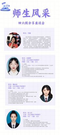 为促进积极向上的班风学风建设,帮助大家备考四六级,精诚书院面向2022级以上本专科全体学生,以班级为单位开展“朋辈说”之四六级经验分享活动。截至目前,我书院已开展分享7场,参与学生共计1410余人次。