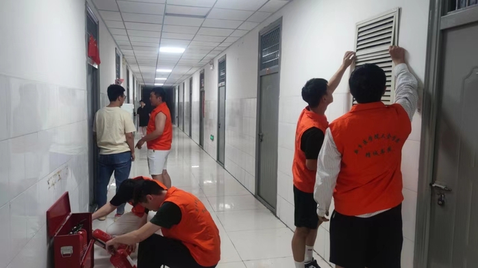 为保障学生的生命财产安全,将事故防患于未然,促进学生的健康成长,平原和新乡安防小组在两校区分别开展了宿舍楼区域的安全隐患排查,以查促改,以改促进,督促学生时刻保持警惕,贯彻落实“安全第一 预防为主”的安全方针。