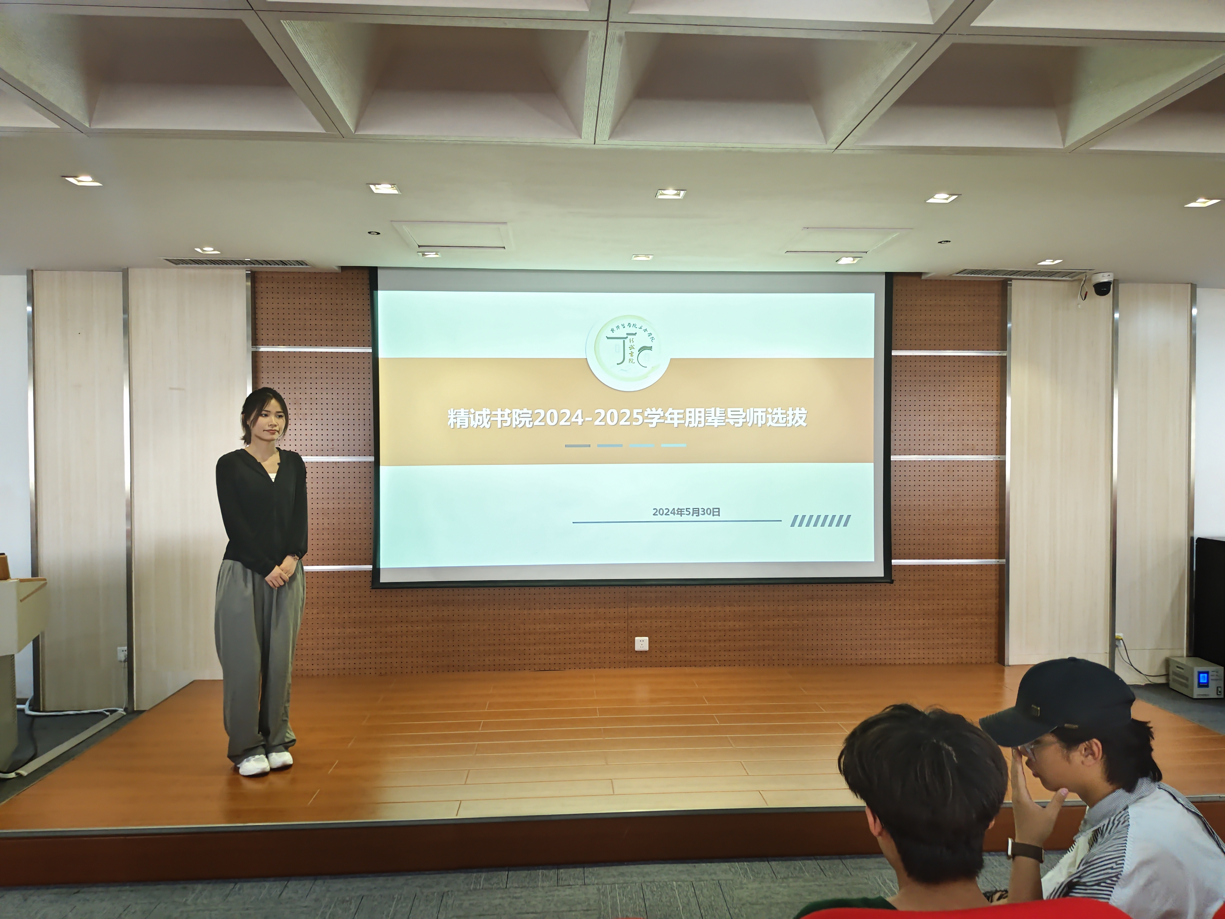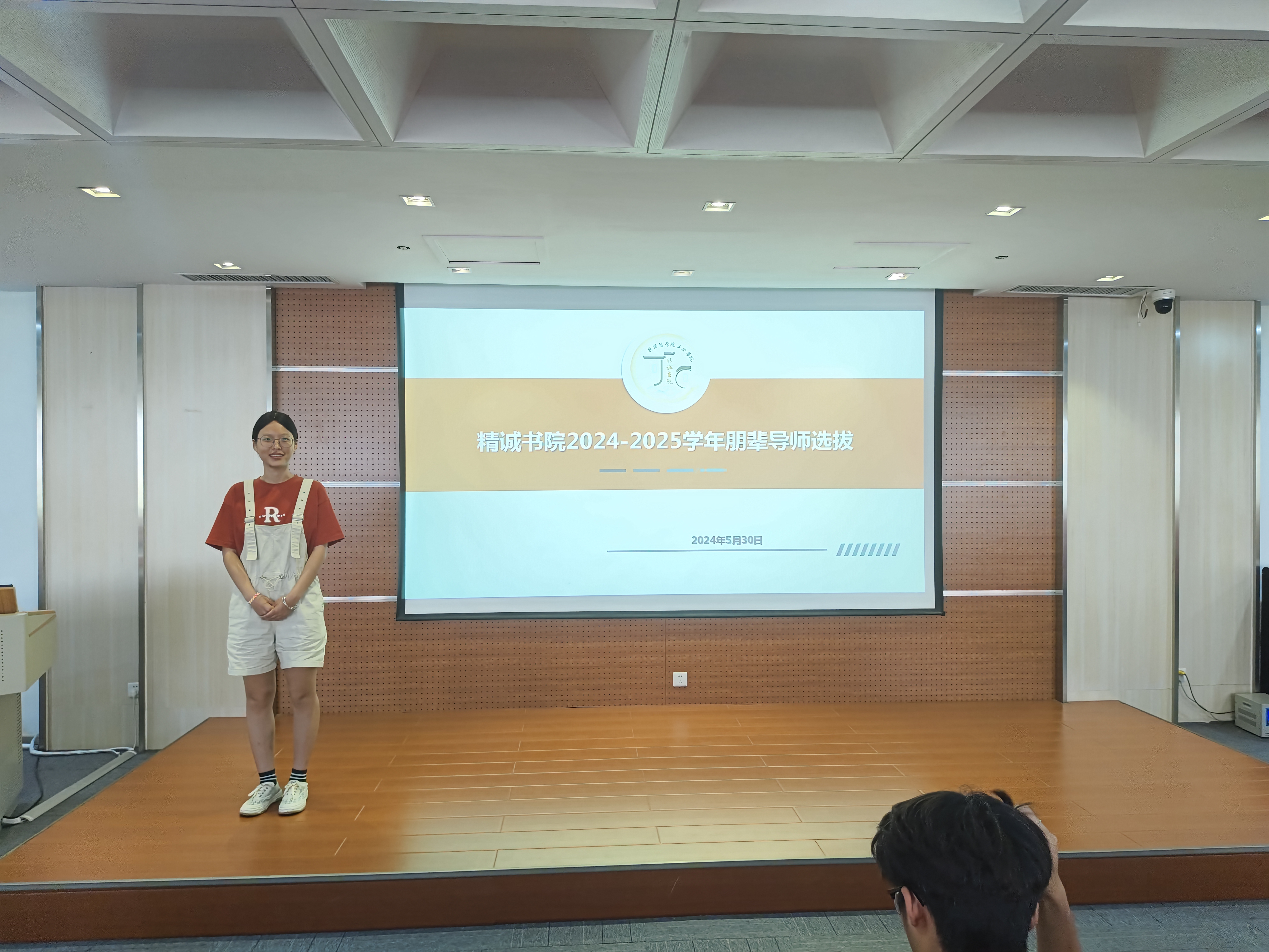接着,活动选聘了新一届朋辈导师。会上,李字阅宣读《精诚书院朋辈导师工作方案》,并详细介绍了选拔流程和工作要求,要求朋辈导师要践行“全心全意为同学服务”的宗旨,坚定前行,充分发挥帮扶作用,为书院新生力量蓄势赋能。