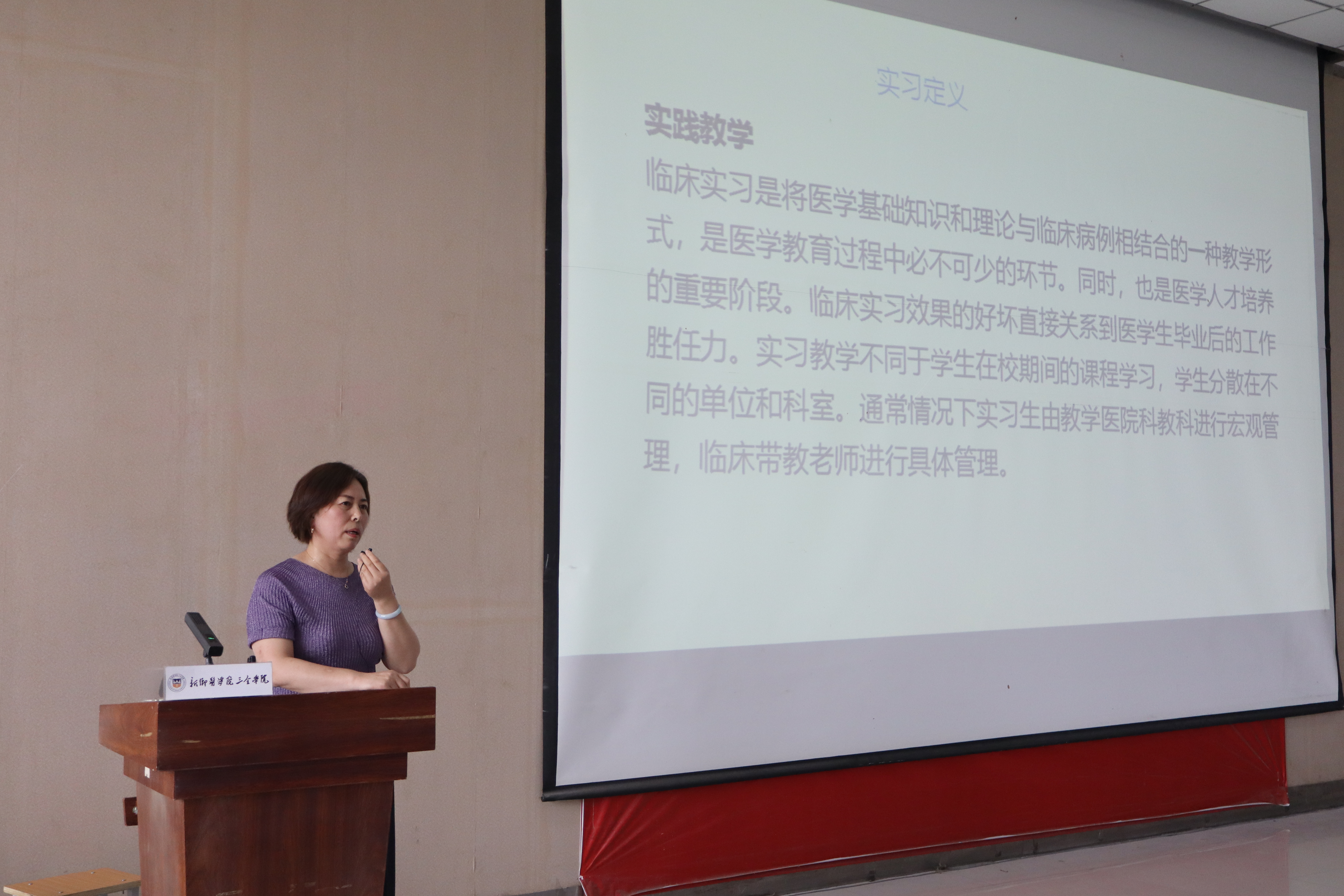 临床学院党总支书记许红芝以“为什么需要实习”作为切入点,强调了实习的重要性和必要性,她强调:一要增强责任感和岗位意识,进一步巩固专业知识,提升专业技能。二要涵养“自找苦吃”的精气神,不怕苦不叫累,勤学苦练,脚踏实地,学出成效;三要处理好临床实习和研究生备考之间的关系,日常学习不放松,同时提前做好规培、就业的职业规划;四要珍惜就业机会,及早就业、高质量就业。