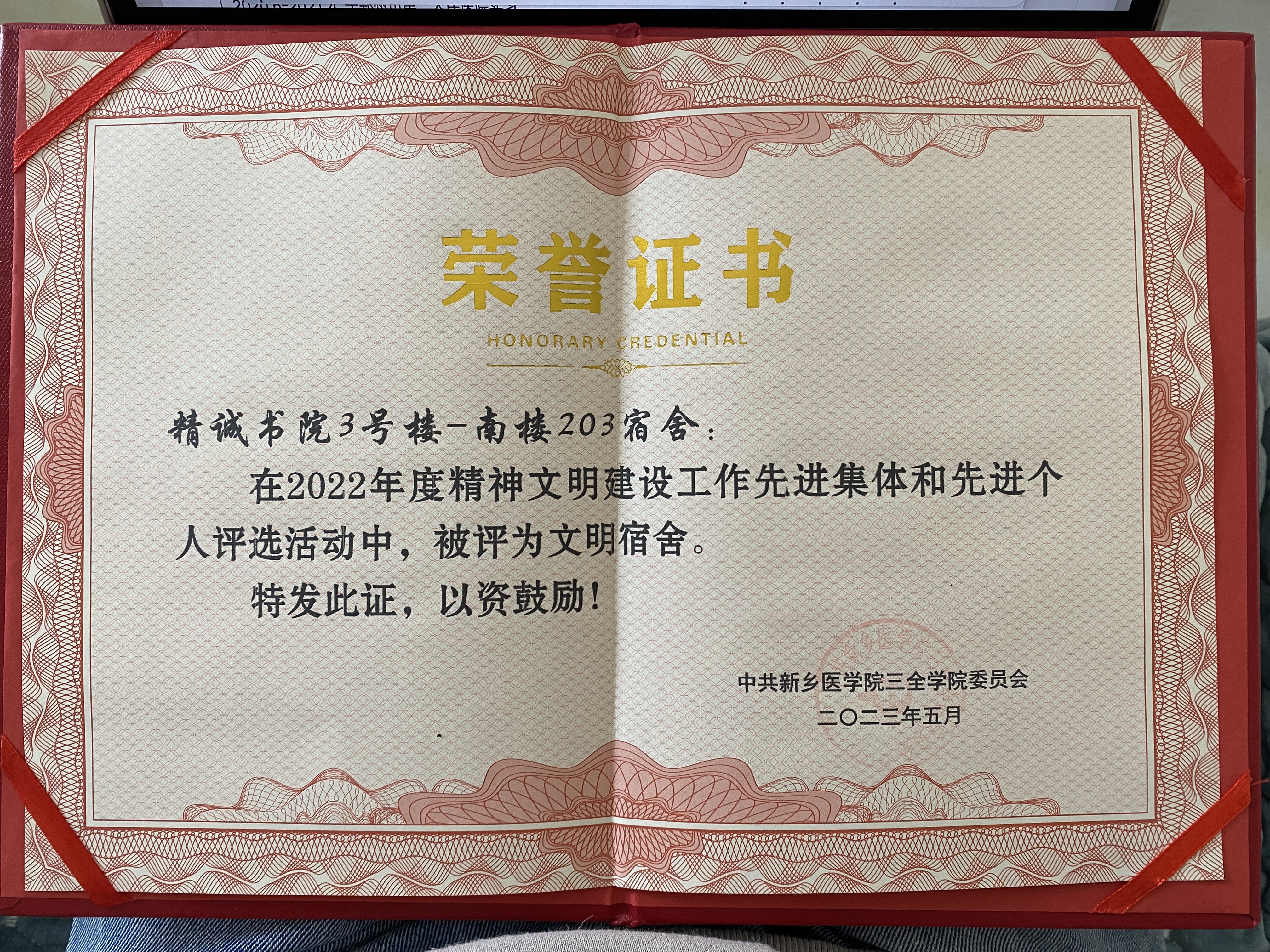 2023.05 所在宿舍获评“文明宿舍”称号
