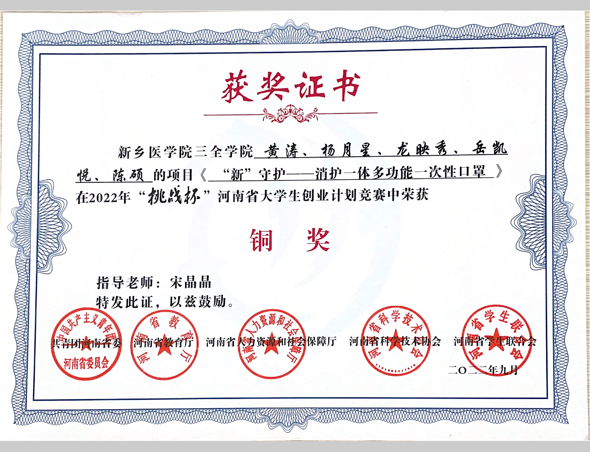 2022.09 挑战杯大学生创业计划竞赛“省赛铜奖”