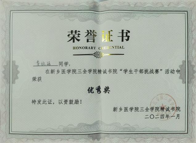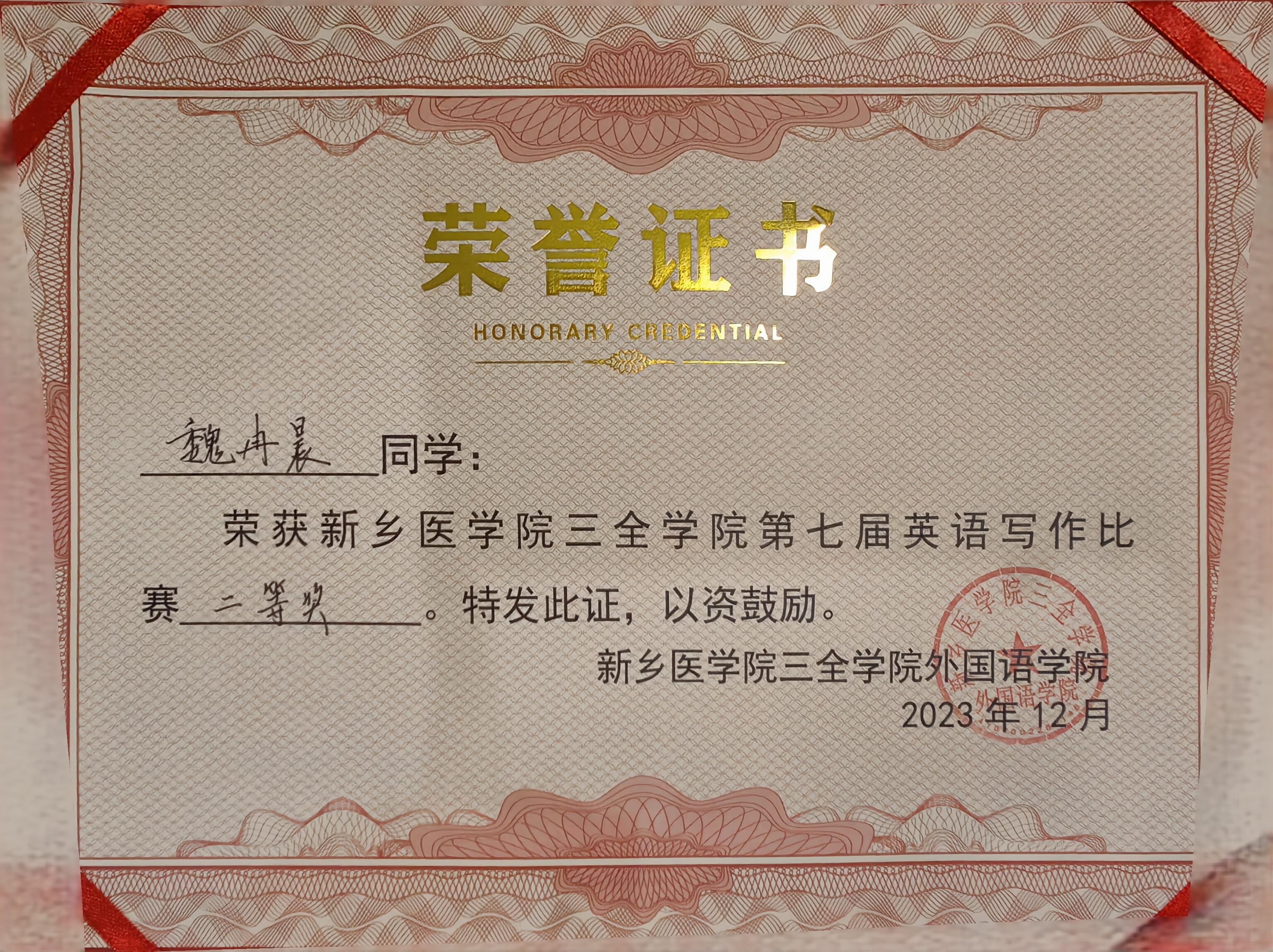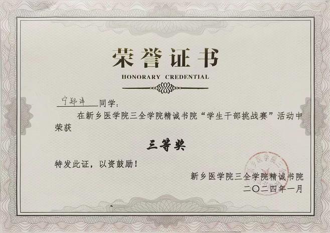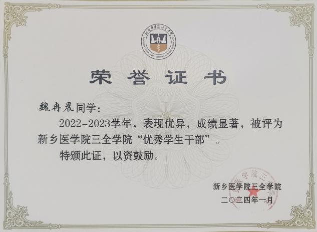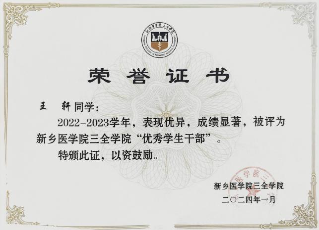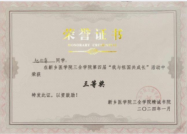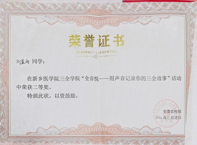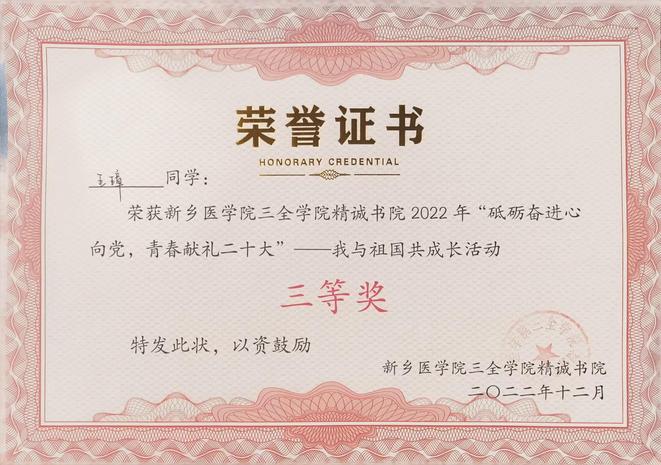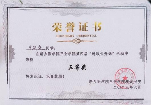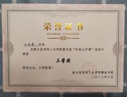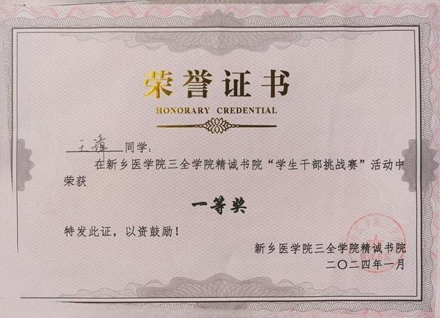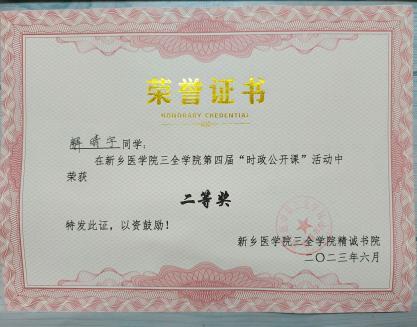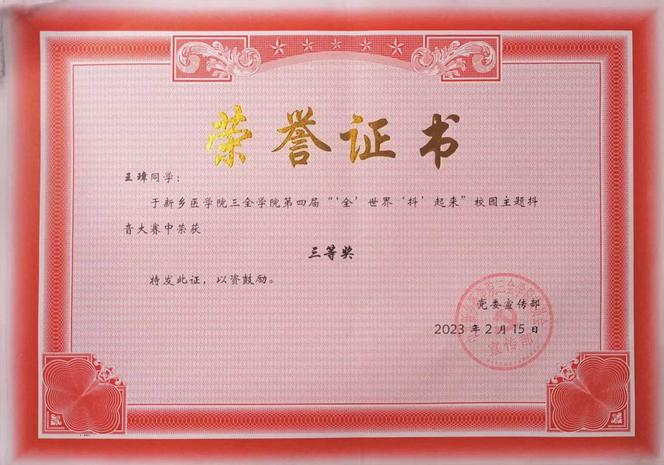 该团支部鼓励同学们积极参与科研项目和学术竞赛,提升自己的学术水平。王明健、黄睿楠、刘晨雨三位同学荣获计算机软件著作权;“互联网+(多功能临床教学VR眼镜)”项目入选;“新乡医学院三全学院大学生科研立项(网约车)”结项;“医工联手(智能导航盲杖)”二等奖;“医工联手(全自动可调节脑卒中恢复推举器)”优秀奖;“医工联手(青光眼病变筛查)”优秀奖;新乡市科研立项(基于考研内卷背景下大学生心理健康状况调查及对策研究)将要结项。