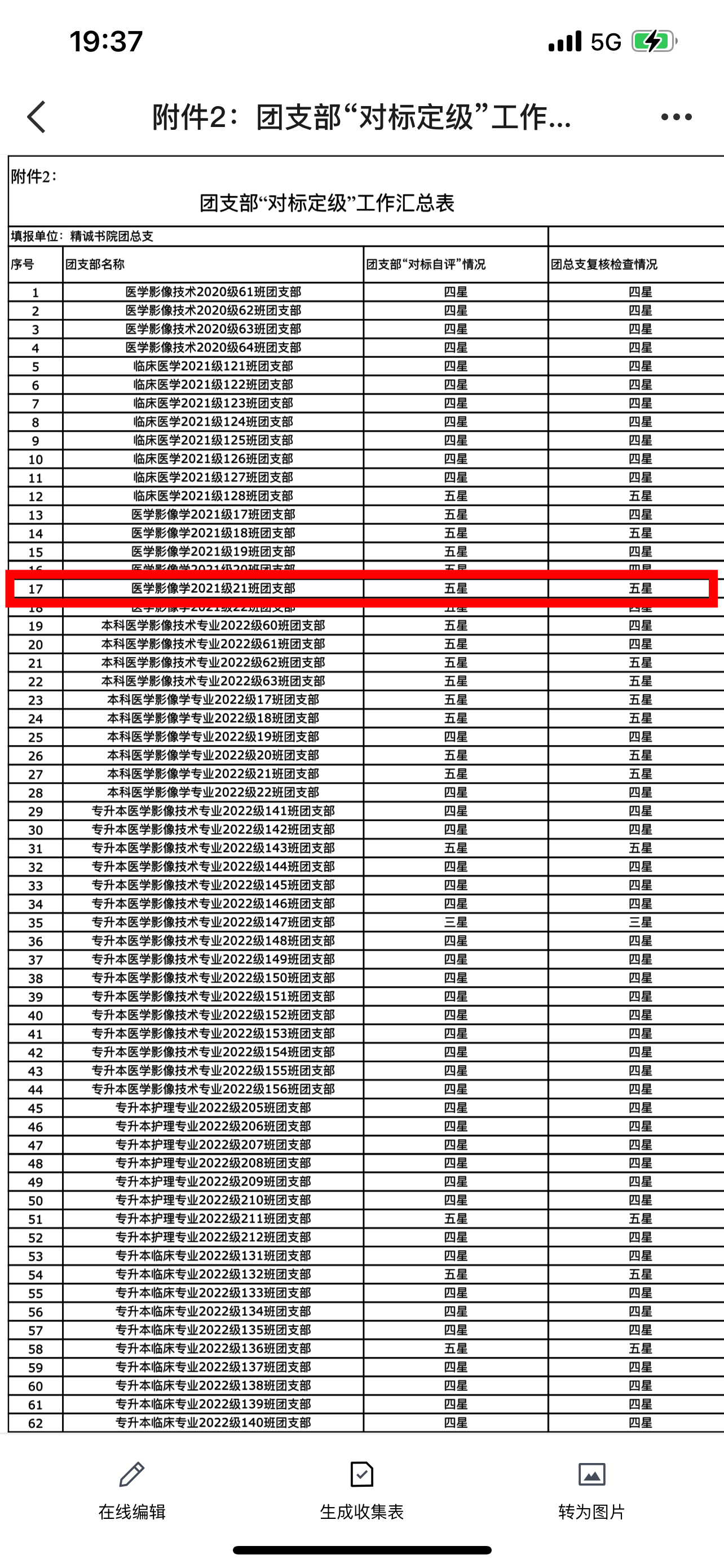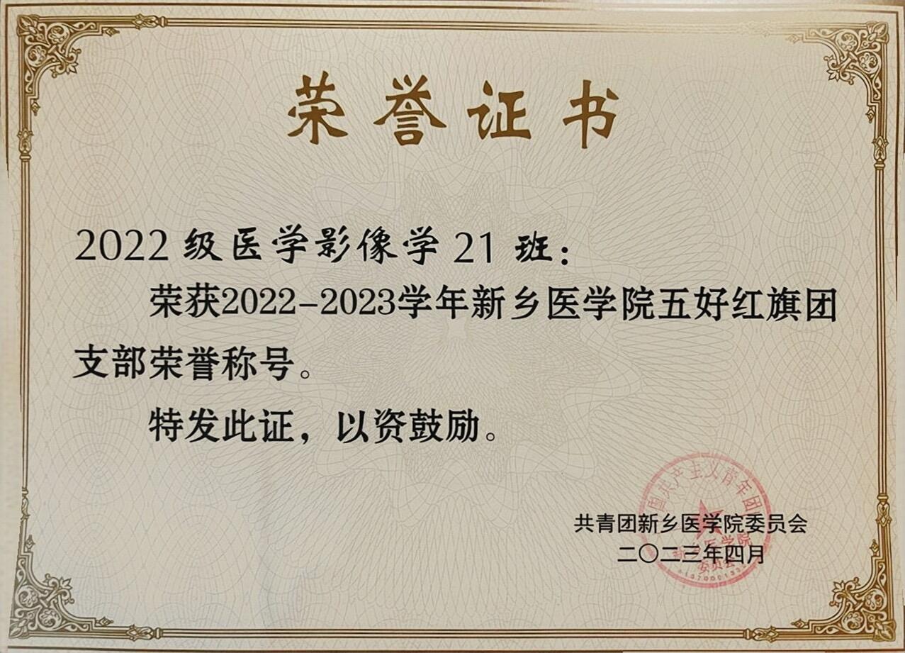 新乡医学院三全学院精诚书院2022级医学影像学21班成立于2022年9月,现有团员25名,入党积极分子11名,预备党员1名,支部委员包括团支部书记、组织委员、宣传委员,其中有8名为优秀团员。在大学期间,该团支部团结奋进,积极帮助同学们解决学业进步、志愿服务、乐于助人等方面的问题,共计服务时长1704.5个小时,多名成员积极加入学校各个组织,在提升自我的同时,带领同学们更好的服务与他人。2023年荣获“五好红旗团支部”,2024年荣获“文明班级”。团支部成员在学术上表现卓越,多人获得奖学金,并积极参与各类学科竞赛,展现出强烈的求知欲和创新精神。秉承“团结、勤奋、求实、创新”的团支部文化,2022级医学影像学21班将继续加强团组织建设,提升青年的思想道德素质,为实现个人和集体的梦想而共同努力,为学院和学校的发展贡献青春力量。