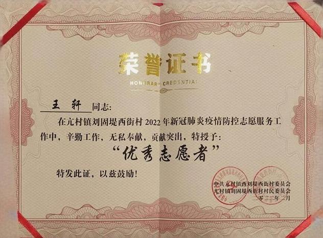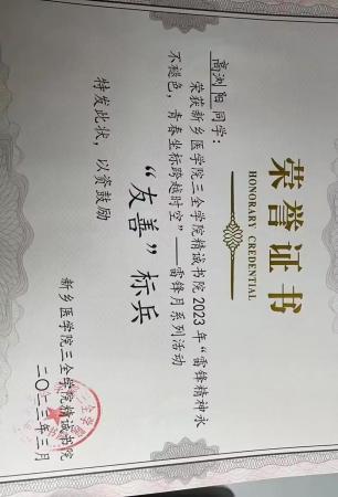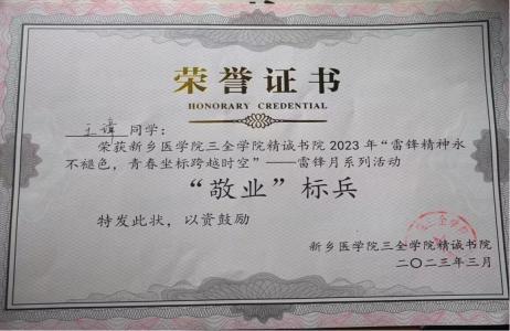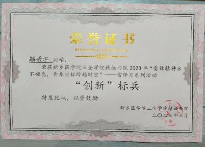该团支部成员自入学以来便致力于志愿服务,志愿者服务时长日益增长。在2023年的“雷锋月系列活动”中多人荣获“创新,敬业,友善”标兵。支部成员在当地也积极参与志愿服务活动并荣获多项志愿者证书,如“最佳志愿者”、“优秀志愿者”、疫优秀志愿者”、“优秀志愿服务者”、“疫情防控志愿者”等。