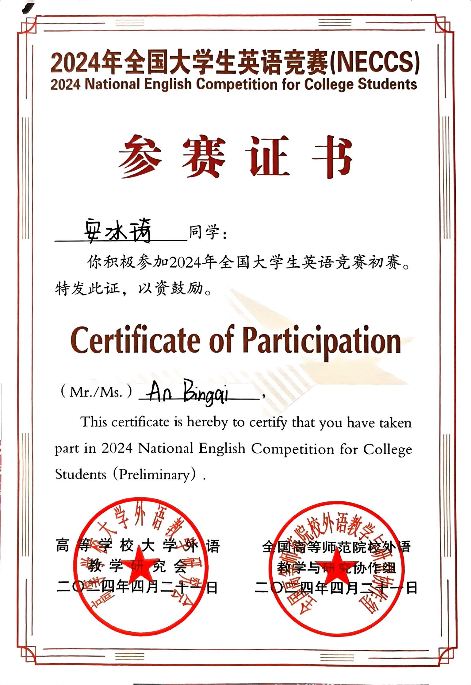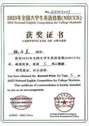 1名“大学生自强之星”奖学金候选人;多名同学参加大英赛及英语写作比赛等。