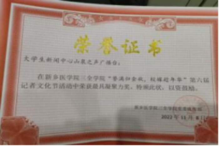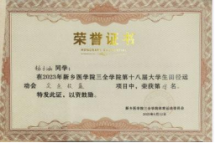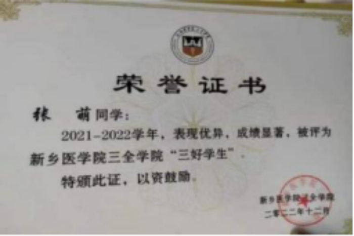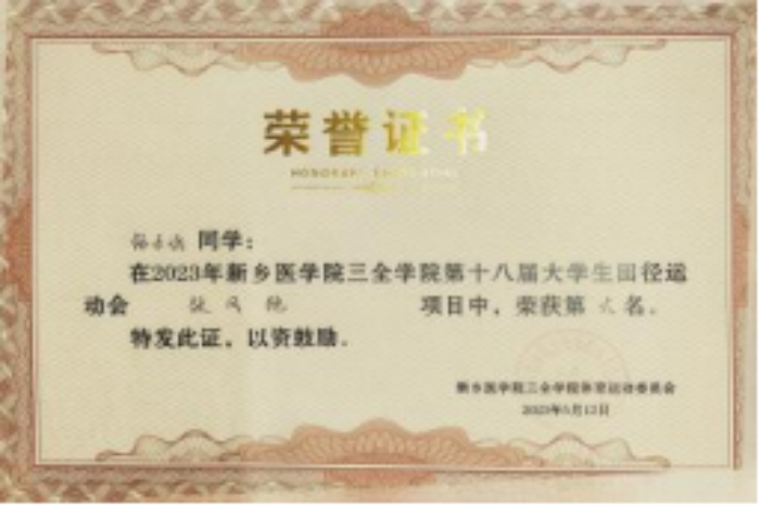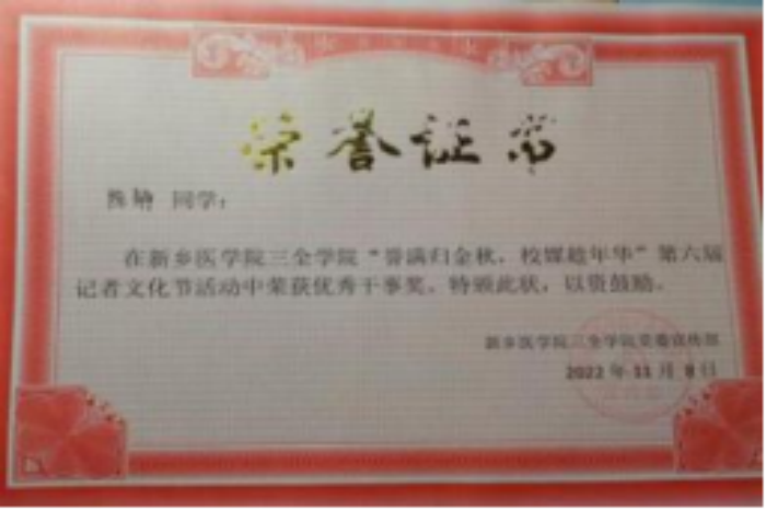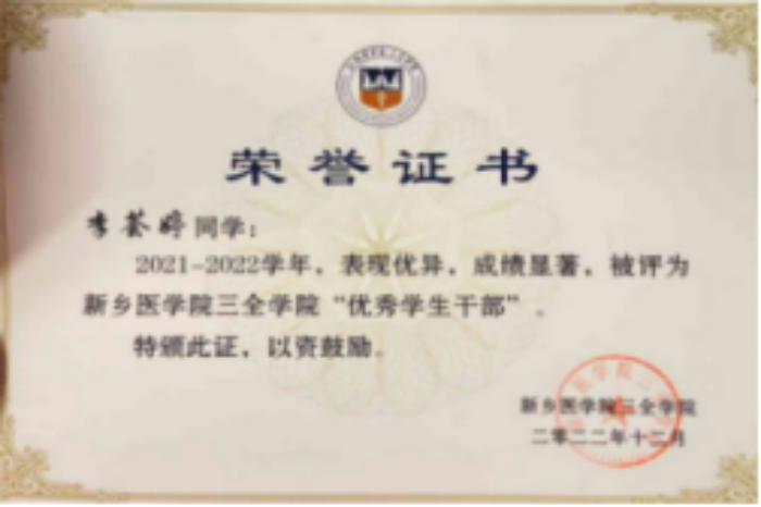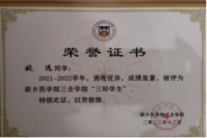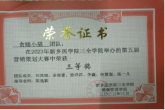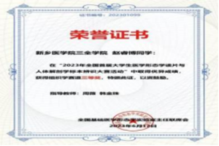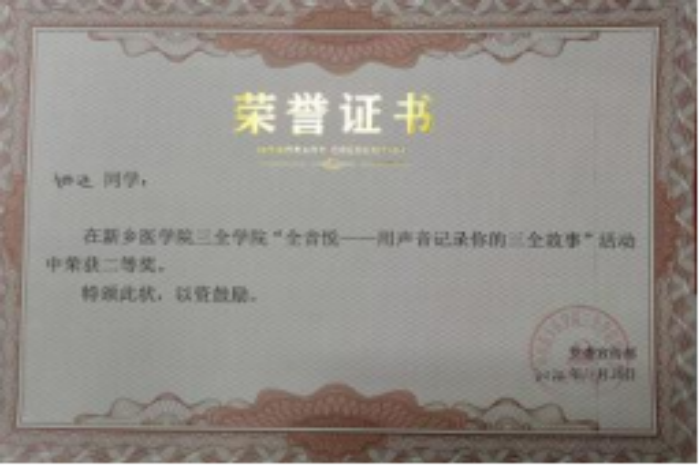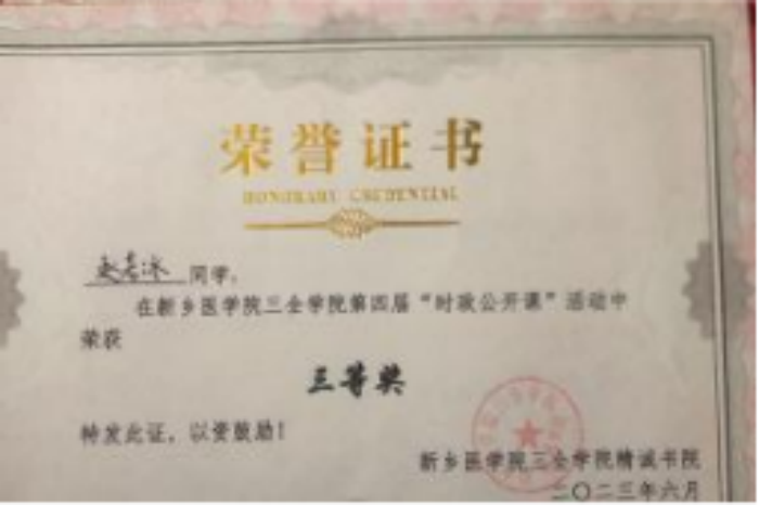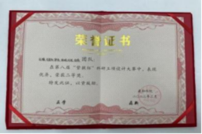 (2)挑战杯省级三等奖:该奖项为提升书院同学发明创造的积极性做出了贡献,为学校参加该比赛的医学价值做出了贡献。