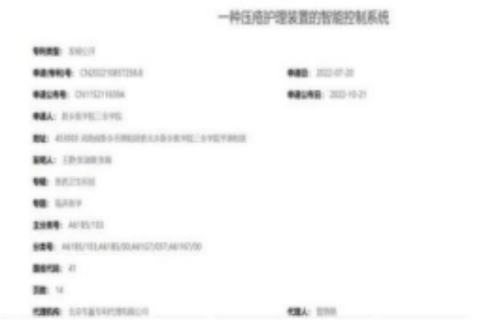 (3)国家级专利发明人(一种压疮护理装置的智能控制系统):参与项目发明创造,此荣誉为学校科研做出贡献。