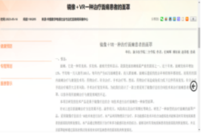 (1)国家级新闻短文:镜像+VR一种治疗面瘫患者的面罩