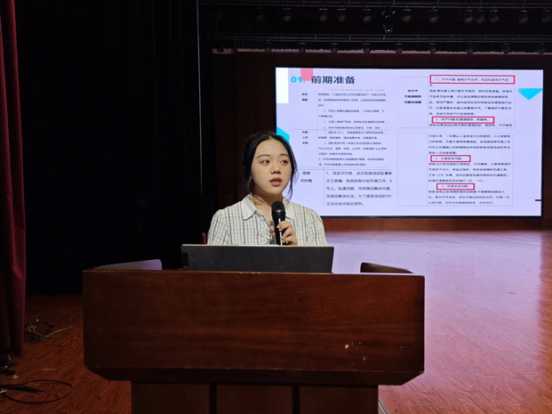 随后,优秀实践学生代表王佳慧上台分享团队经历。作为去年重点实践团队的负责人,她与团队共同设计了一系列富有趣味和教育意义的实践活动,带领小学生们参与了医学大课堂、童心永向党等多个环节,深入感受医学魅力和生命宝贵,她说,实践活动在孩子们心中播下了探索生命奥秘的种子,让孩子们更加珍视生命,懂得感恩与奉献的意义。她的话语中透露出对孩子们成长环境的深刻理解和对未来社会栋梁的殷切期望。在场的观众纷纷被她的分享所打动,对王佳慧及其团队所付出的努力表示由衷的敬佩和赞赏。
