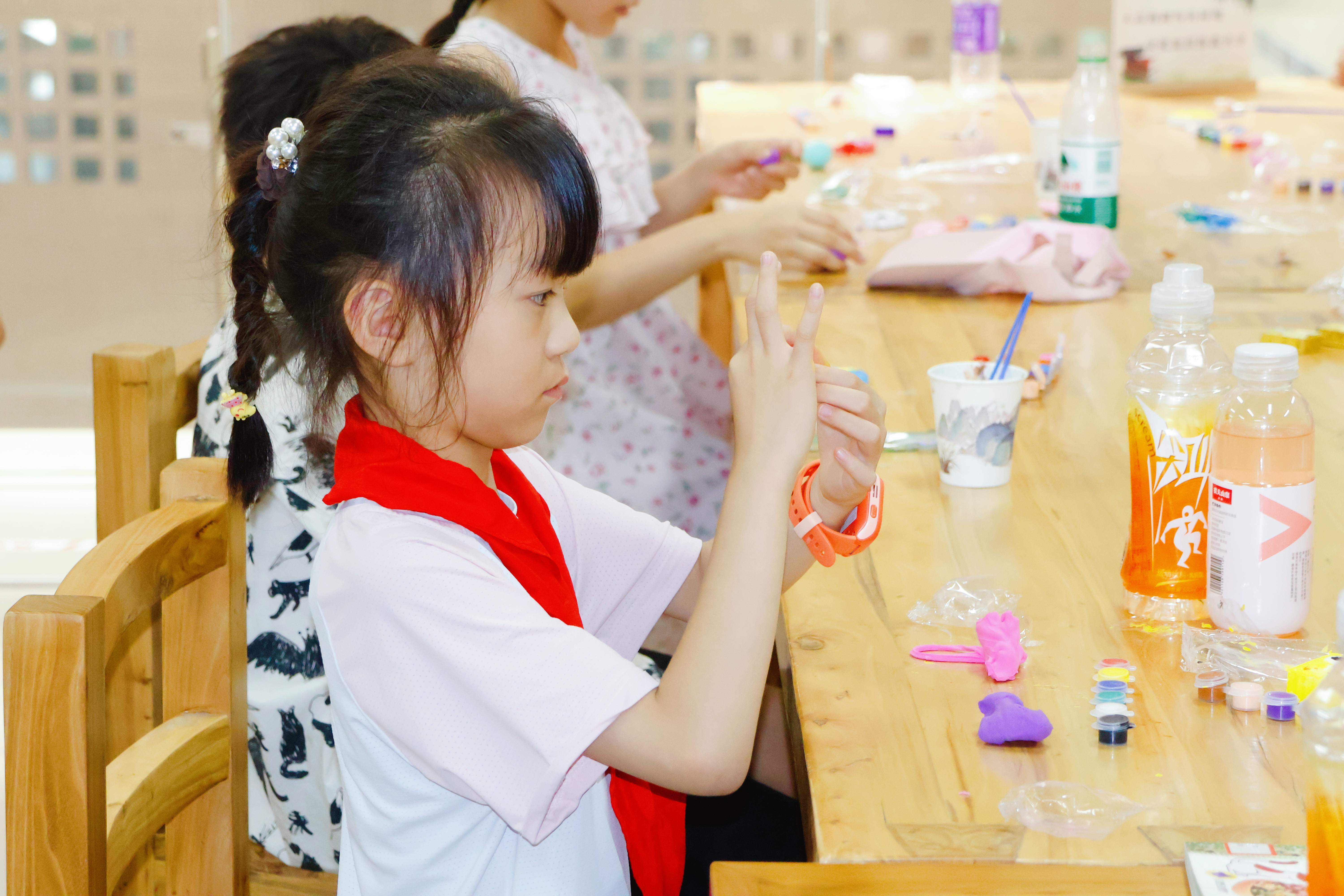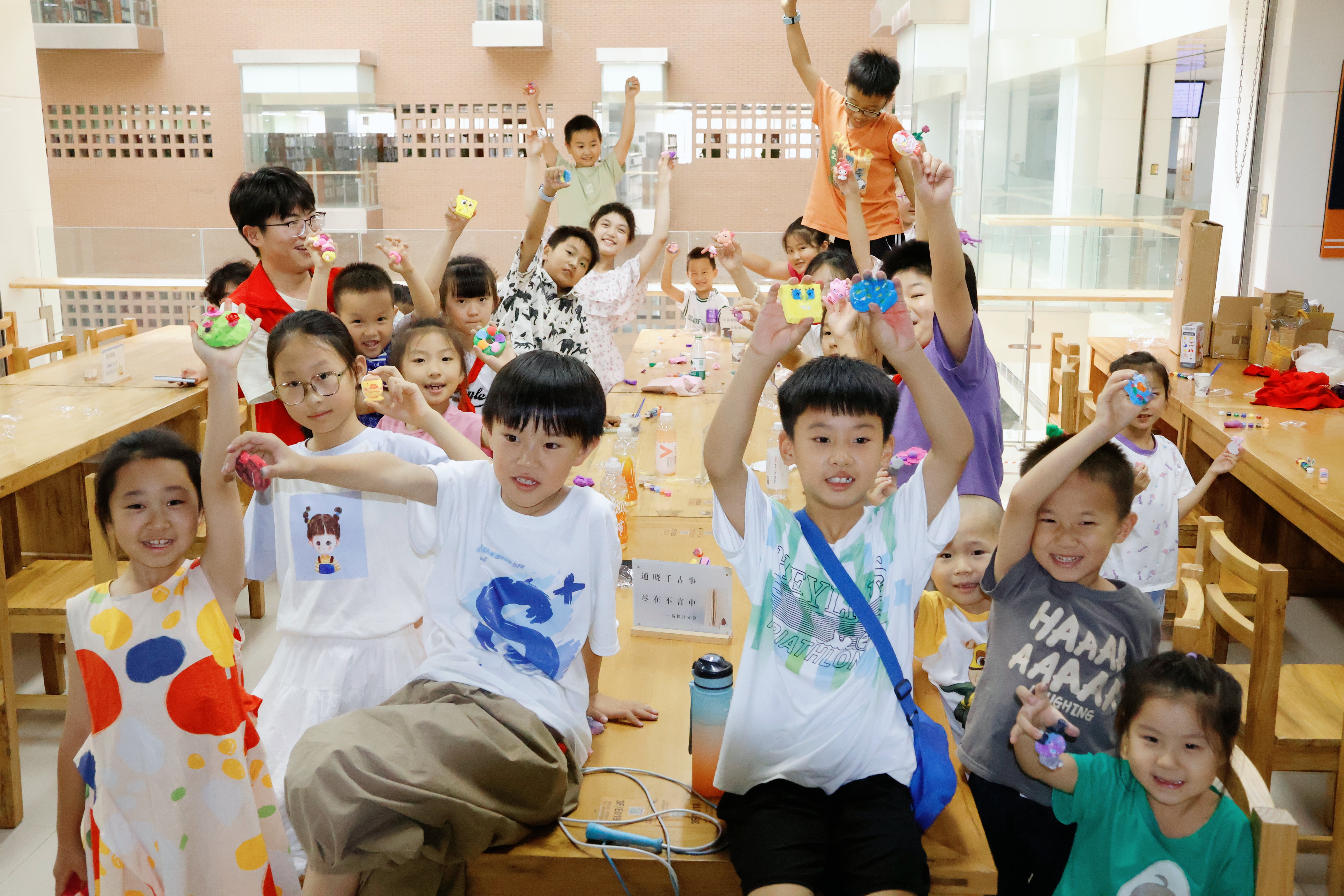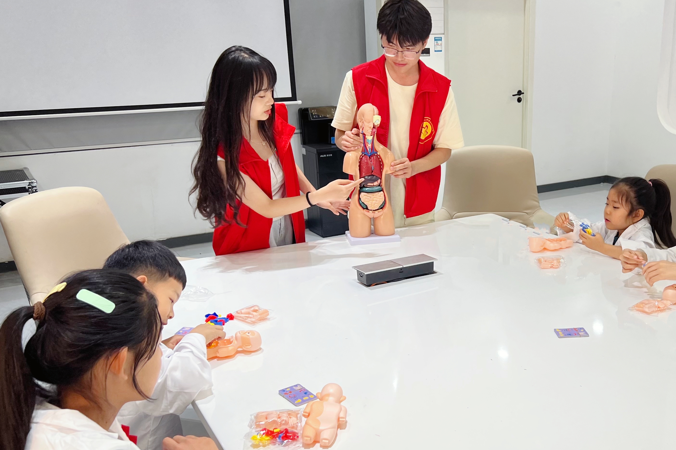 最后,志愿者为“小医苗”们讲解了人体标本模型,辅以文字介绍和动手模拟,生动地展示人体形态之美,诠释生命奥秘,揭示医学真谛。紧接着,在志愿者的指导下,“小医苗”们通过石膏磨具、橡皮泥等进行人体模型和器官结构的制作和讲解。一个个形态可爱的“定制”人体模型,将器官名称和学校名称巧妙镌刻其上,更寓意着对“小医苗”们对未来医者仁心的期许。