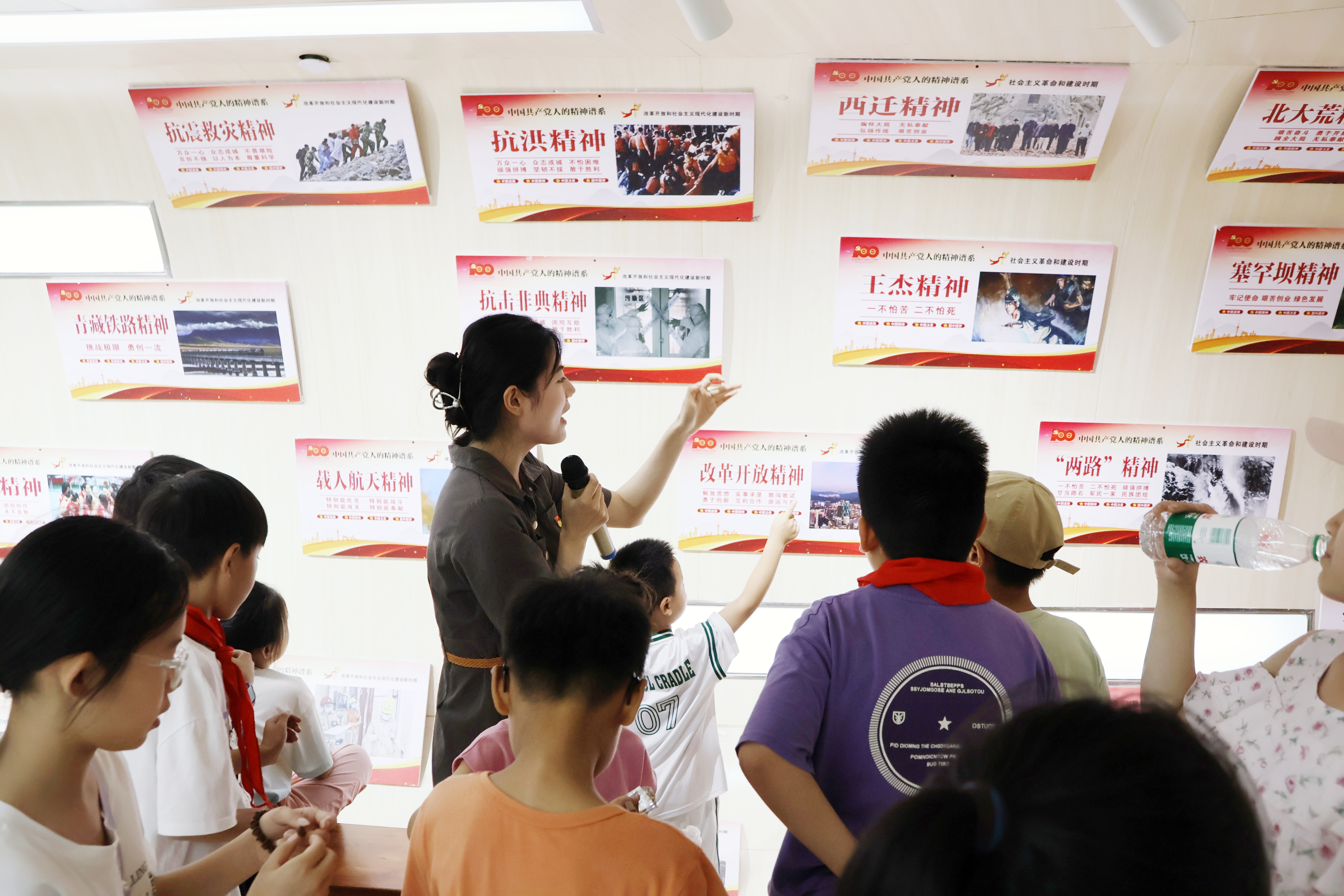 在我校新时代学习馆,马克思主义学院王桃金带领“小医苗”们进行参观,让孩子们发自内心增强对党的政治认同、情感认同和实践认同。紧接着,精诚书院学生团总支副书记兼“青马班”班长杜文凯与小学生们进行交流互动,抛砖引玉式谈及“入队、入团、入党三部曲”,用小学生听得懂的“时代语”、看得见的“身边事”、接地气的“活教材”为大家上了一堂微团课,团结带领广大青少年儿童坚定不移听党话跟党走。