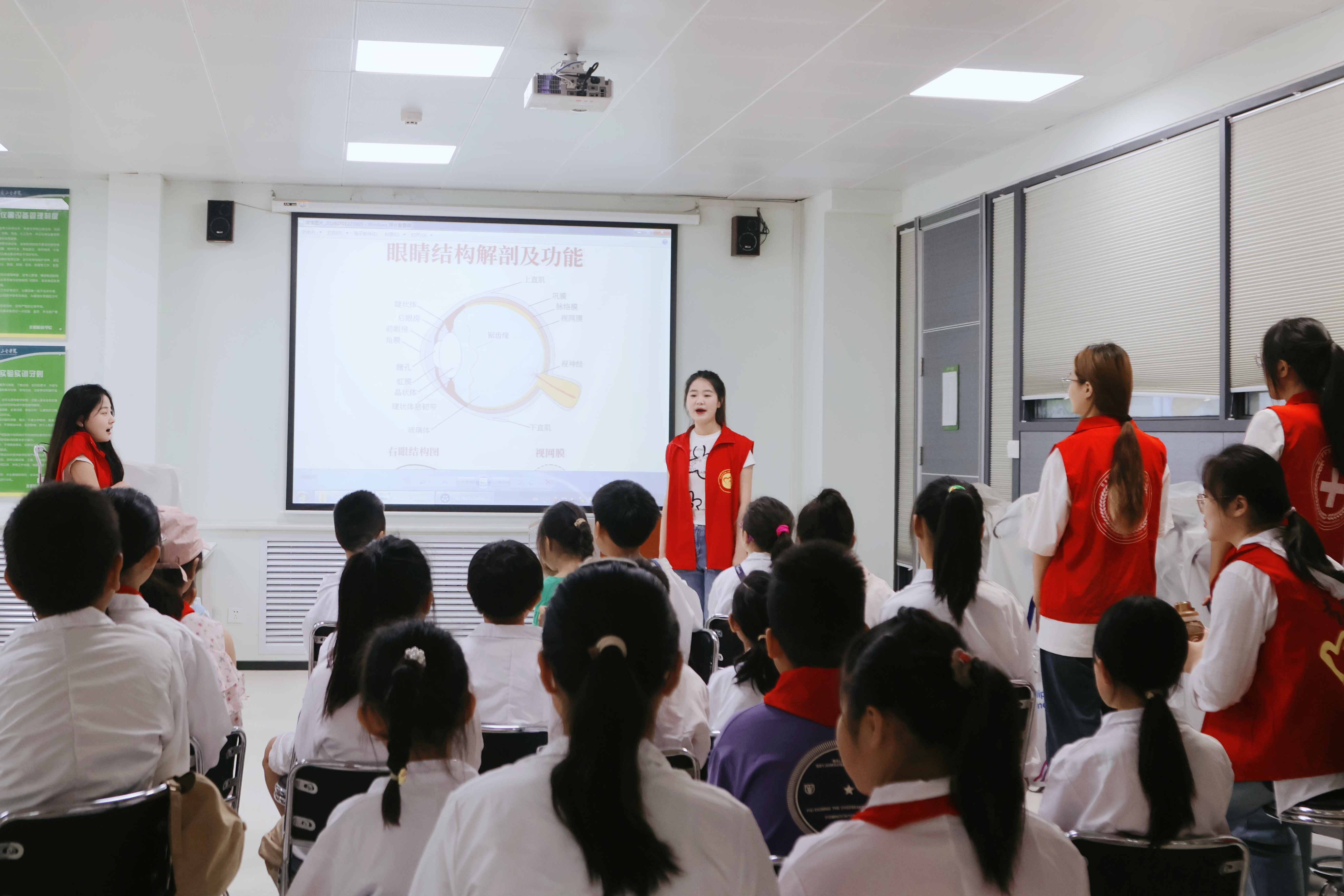 首先,“小医苗”们来到了光明眼科学院实验室。在这里,通过志愿者的讲解和互动体验,他们了解了眼睛的构造和工作原理、近视的成因和危害以及具体防控措施,并进行了视力测试,学习了正确的用眼姿势和习惯,为保护视力打下了坚实的基础。“小医苗”们兴奋地尝试了各种视觉测试设备,对眼科医学产生了浓厚的兴趣。