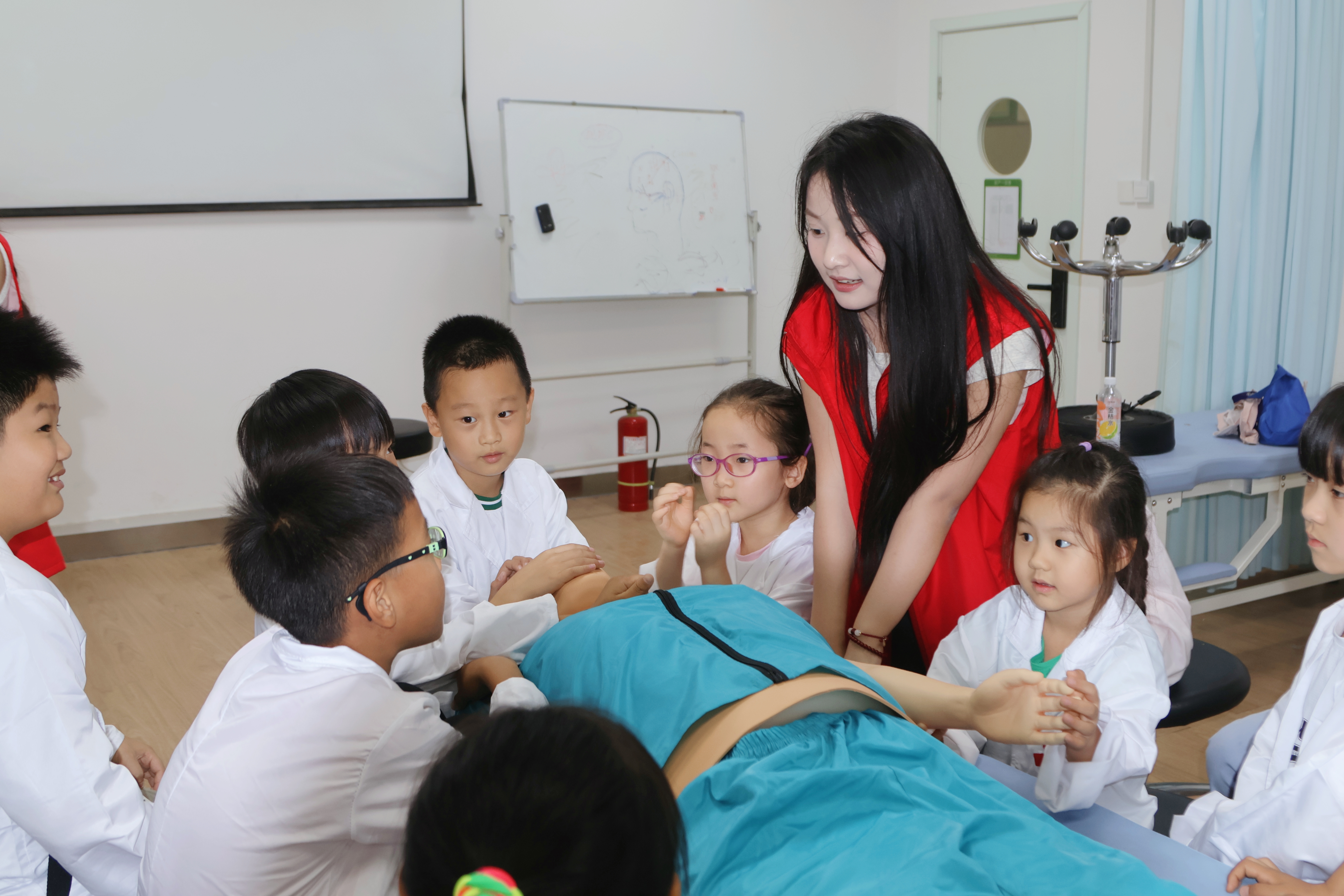 随后,在康复医学院,志愿者化身“小讲师”,为“小医苗”们讲解了海姆立克急救法、心肺复苏等医学急救常识。宣讲中,“小医苗”们学习了心肺复苏的基本知识和操作技能,了解了在紧急情况下,如何进行自救和互救,提高了他们的安全意识和自救能力。大家认真听完志愿者的讲解后,跃跃欲试,争先恐后进行心肺复苏等急救实践。