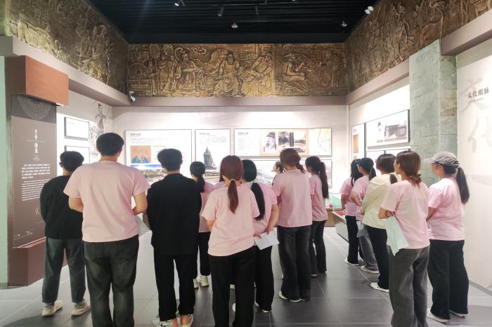活动伊始,团队成员在讲解员的带领下共同参观了史志馆展厅,大家沿着历史发展轴线依次对“走进新乡”“千年沧桑”“红色印迹”三个展区进行了参观学习。学生代表贾楠发言,她说:“走进新新乡史志馆,我们能够感受到本土红色文化带给我们的洗礼和感动。我们青年学生更要高举红色文化的火炬,传承红色基因的内核,让红色精神往深里走、往心里走、往实里走。自觉做共产主义远大理想和中国特色社会主义共同理想的坚定信仰者和忠实实践者!”