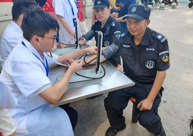 活动现场,志愿者们迅速行动起来,他们设立了临时体检站,为工人们提供了血压测量、血糖检测等相关检查服务。队长贡建云为一名工人测量了血压血糖,通过交谈,了解到工人在炎热的工作环境,最大的挑战是防中暑和体力劳动后的肌肉酸痛。为了避免酷暑,工人会在早上五点上工,工作任务较重,为了缓解疲劳,实践团队成员现场进行了艾灸、按摩等服务,实践团队成员充分发挥自己所学技术,为建筑工人减免身体劳累,获得一致好评。