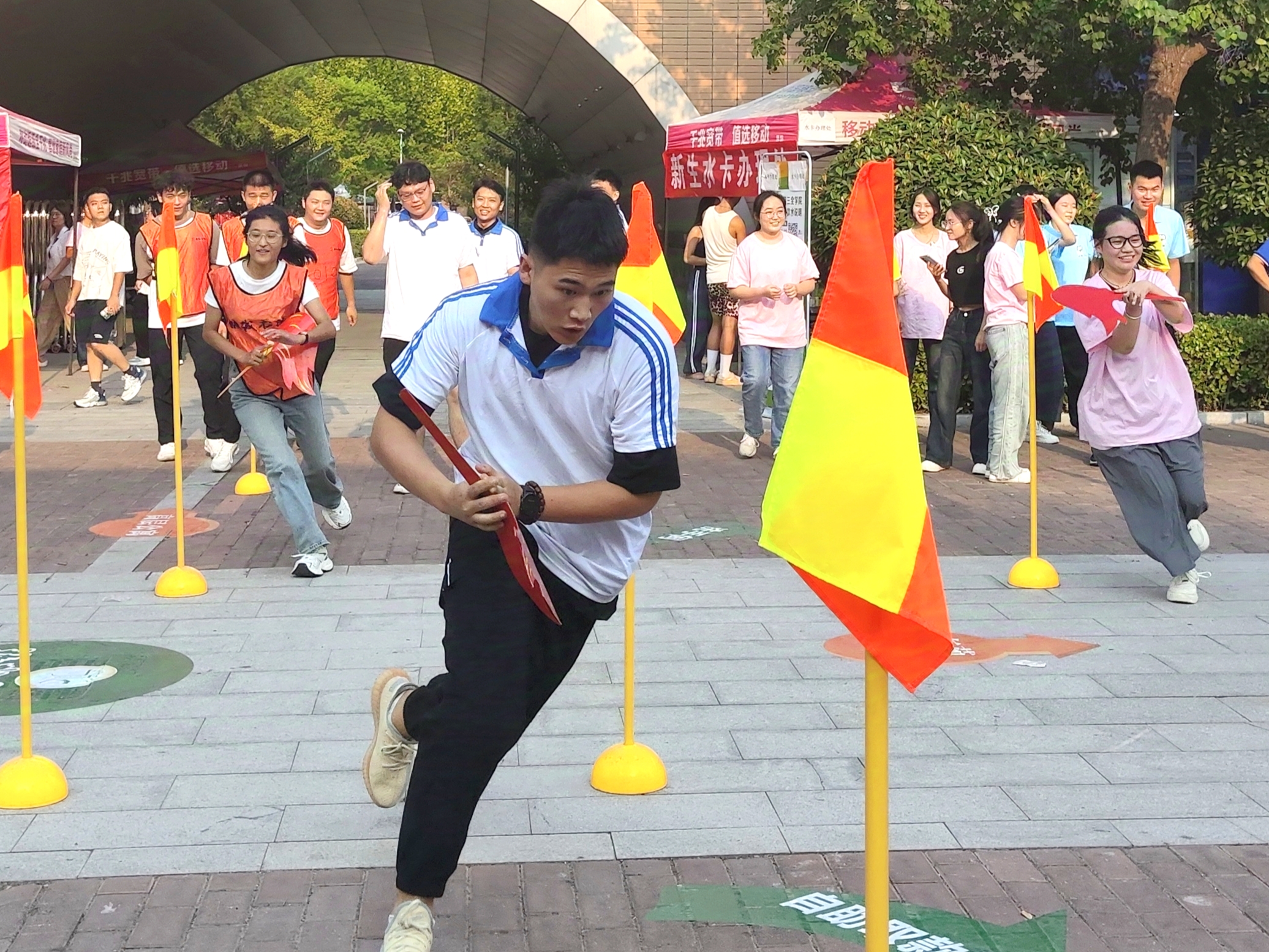 8月31日下午,生活导师组织同学们参加社区奥运大闯关活动,依次为“游”刃有余一一自我心态”接力旋风跑、“乒”尽全力——热爱,可抵岁月漫长、一网无前——唯有坚持才能抵达”等活动。生活导师和24级新生化身奥运健儿,带着勇气、毅力和坚韧参加大闯关活动。“小小旋风跑,拿捏,拿捏。”24级新生滑梦泽拿着奥运火炬激动地说,“我很喜欢全红婵,永不言弃、突破自我、勇于挑战、追求卓越,希望我们24级新生能够学习奥运精神勇攀知识高峰。生活导师代表赵芳进行对2024级的“小萌新”们自我激励与目标制定,加强团结意识,展现出青春的激昂与蓬勃。他们用汗水和努力,绘制出一幅充满生命力的画卷,让人们感受到了青春的无限可能。