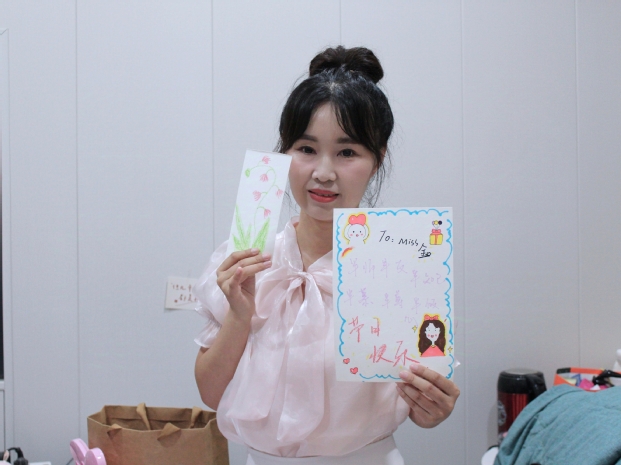 清晨,学生代表们携带精心制作的节日贺卡,向教师们致以诚挚的敬意。这些贺卡是学生们自发组织创作的成果,每一幅画作都仿佛蕴含着师生间无数温馨互动的缩影,记录下了教师们在教育道路上的辛勤耕耘与无私奉献。每一笔、每一划都蕴含着学生们对教师的崇高敬意与深切感激。教师们手持学生们精心准备的礼物,脸上洋溢着幸福的微笑。相机的快门声再次响起,捕捉了这一美好的瞬间,这张照片将成为师生间宝贵的记忆,见证着这份浓厚的师生情谊。