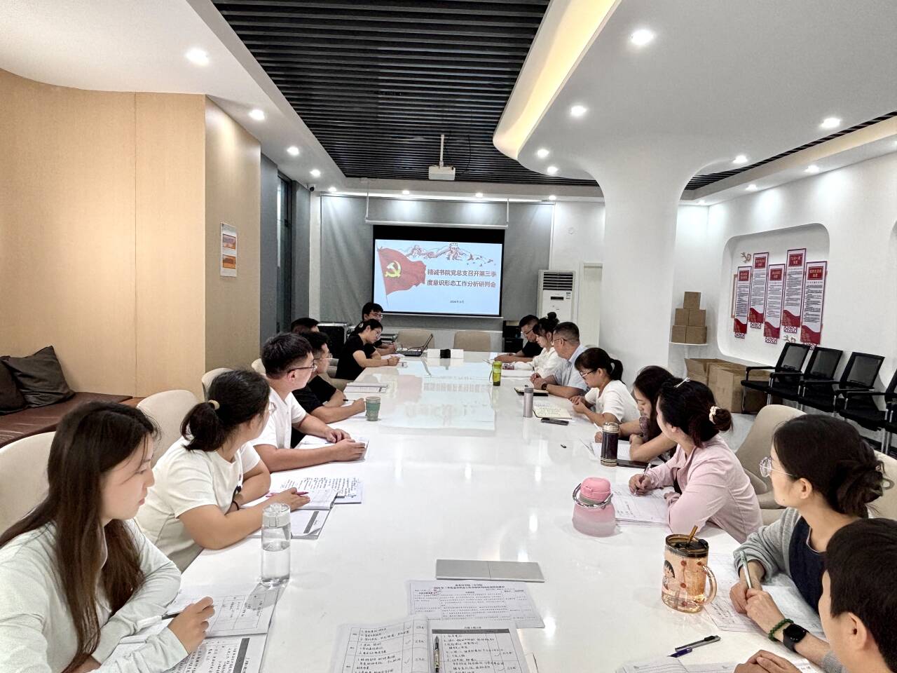 9月6日,精诚书院党总支于党员活动室召开第三季度意识形态工作分析研判会,本次会议由精诚书院党总支书记张新主持,党总支副书记万建苗以及全体辅导员参加会议。