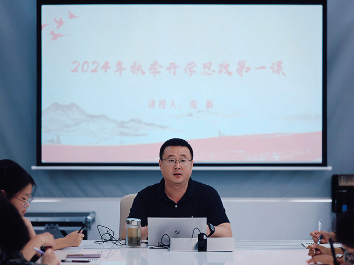 近日,精诚书院党总支书记张新在党团之家开展了2024年秋季开学思政第一课,围绕党的二十届三中全会精神、新中国成立75周年、青年奋斗、校园安全、电信诈骗等方面为2024级新生代表讲授了一场生动的的思政课。