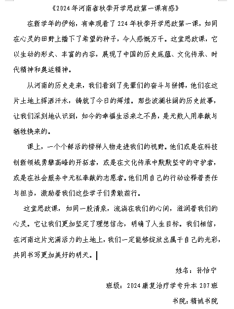 为全面贯彻落实习近平总书记对新时代学校思政课建设的重要指示精神,全面推进《关于新时代加强和改进思想政治工作的意见》相关要求,深入学习宣传贯彻党的二十届三中全会精神,近日,精诚书院党总支开展2024年秋季开学思政第一课系列活动。