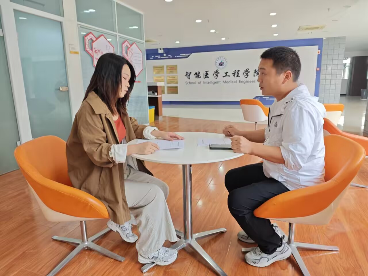 9月29日,精诚书院辅导员孟新雨与智能医学工程学院教师李祥在医工楼四楼展开双院沟通会议。孟新雨就学生专升本、就业前景等问题展开讨论,李祥根据问题做出相应回答,学生专升本院系将进一步联系相关教师开展讲座,实时关注学生学习情况,对于就业前景问题,院系将会联系多家企业并开展讲座等方法。进一步做好学生分类化指导,积极营造就业的浓郁氛围。