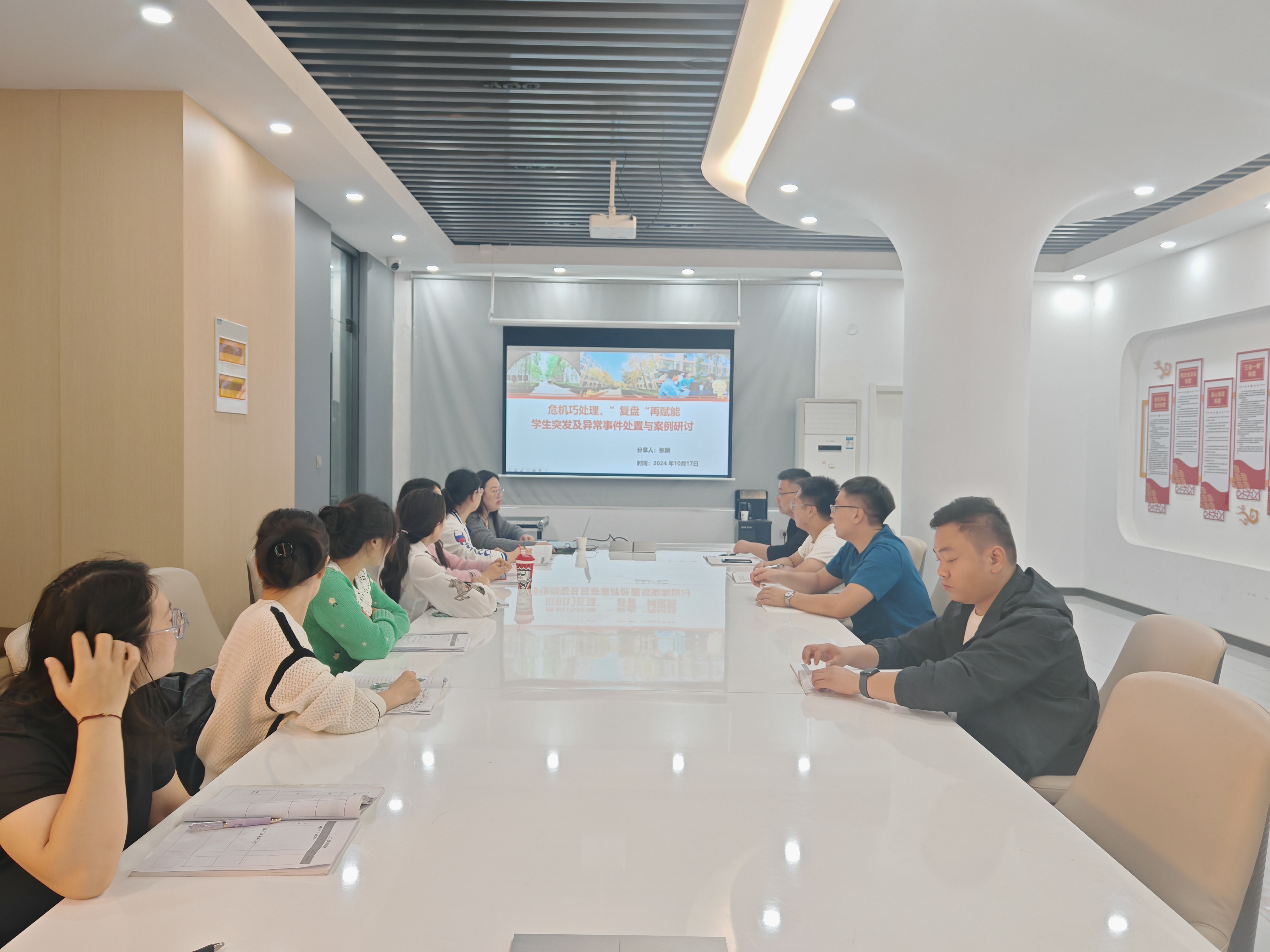 为持续提升辅导员育人能力和工作水平,搭建辅导员学习交流平台,推进辅导员队伍专业化、职业化、专家化发展。10月17日,精诚书院在党团之家开展了“危机巧处理,‘复盘’再赋能”,学生突发危机事件认识与案例研讨,此次培训由我校学务部思政教育中心主任张颖主讲,全体辅导员参加。