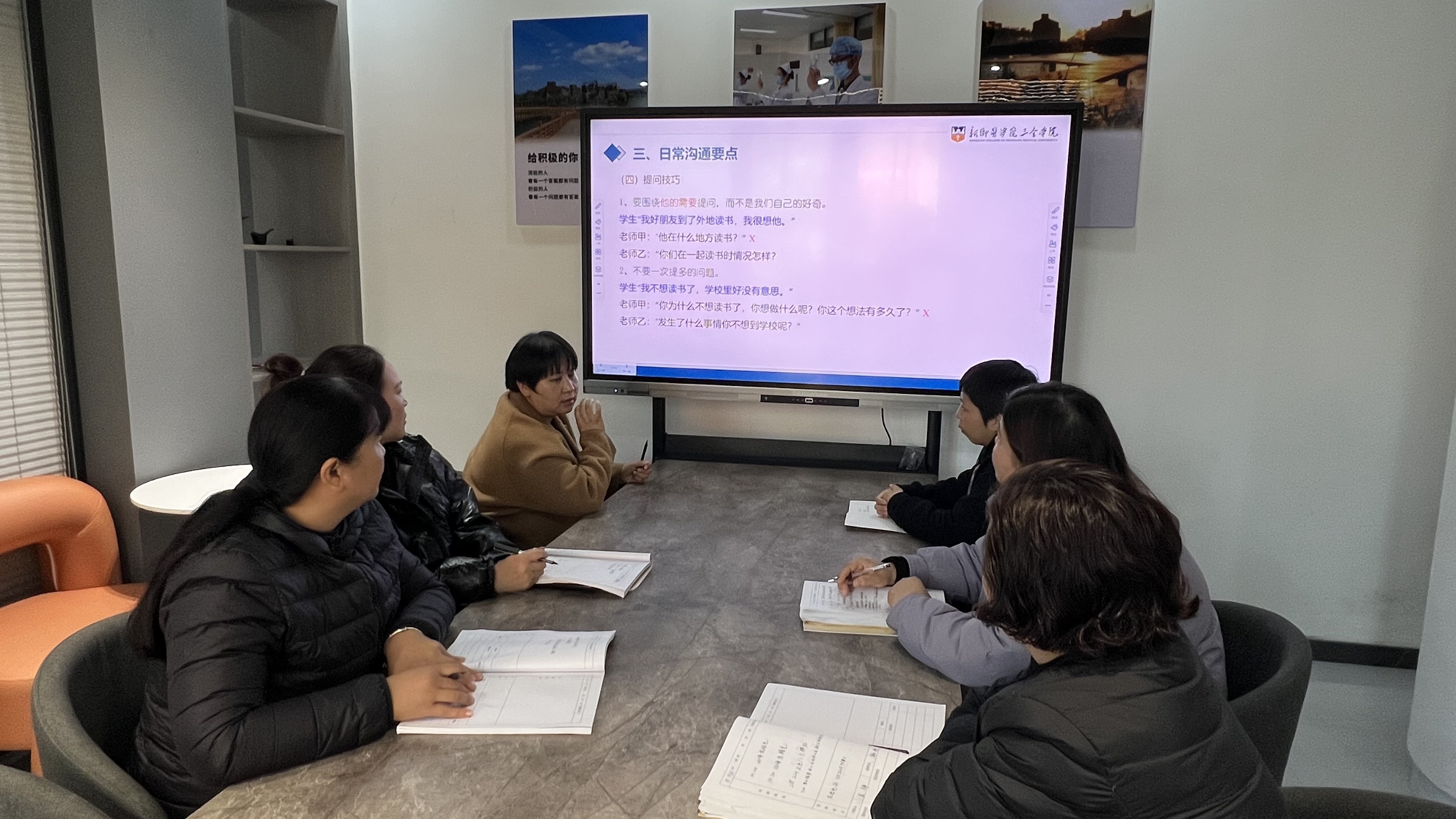 培训伊始,胡静静首先深入剖析了需要重点关注的九类人群,包括学生学习压力、人际关系难题、家庭因素引发的情绪波动等。她着重指出,作为学生日常生活的直接管理者,生活老师需具备高度的敏感性和洞察力,以便及时发现学生的异常表现。通过一系列生动的案例分析,结合互动讨论,胡静静传授了一系列实用技巧,助力生活老师精准把握学生的心理动态,为后续的有效干预打下坚实基础。