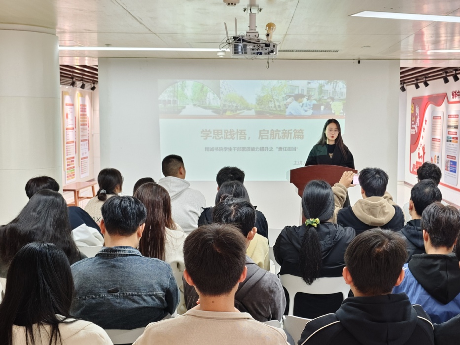 为深入学习贯彻党的二十届三中全会精神,贯彻落实习近平总书记关于青年工作的重要思想,切实提升书院学生干部综合素质能力,近期,精诚书院组织开展学生干部素质能力提升系列培训,本次培训围绕“凝心、强基、赋能”精细化设计理念,通过思想引领、责任担当、养成教育、团队协作、新闻技巧、经验交流、素质拓展等七个方面,“个性化定制”培训课程,探索青干精准化培养模式。
