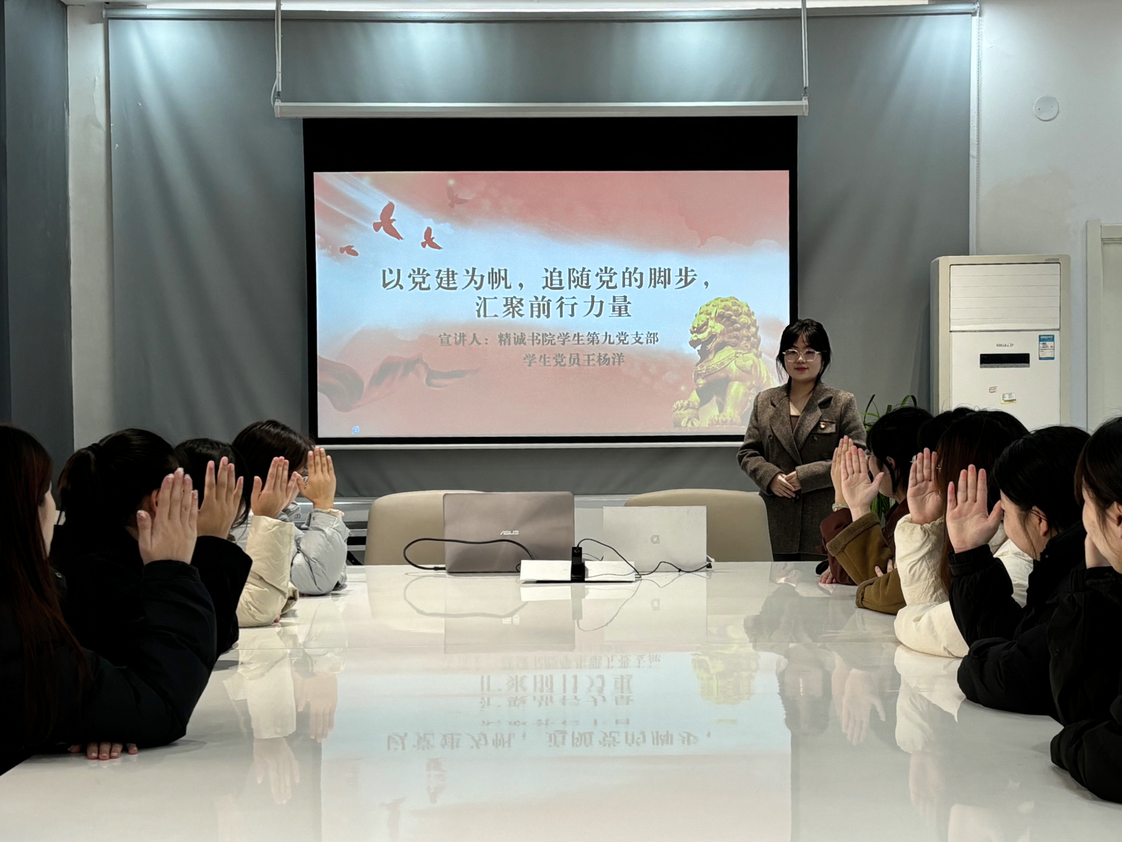 为了进一步提升学生的诚信意识,营造公平、公正、积极向上的考试氛围,学生党员陈黛和张嫣以“树立诚信考风,争做诚信学子”为主题开展宣讲活动。陈黛强调了诚信的重要意义,并通过违纪案例解读了违纪处理办法,张嫣鼓励大家要合理规划复习时间,既要保证学习效率,也要注重身心健康,避免因焦虑或拖延而影响考试表现。活动尾声,陈黛和张嫣带领全体同学共同宣誓,承诺将秉持诚信原则,积极参与每一次考试,用实际行动践行“树立诚信考风,争做诚信学子”的倡议。通过此次学习,同学们不仅增强了诚信意识,也更加明确了自我提升的方向,为即将到来的考试季注入了满满的正能量。