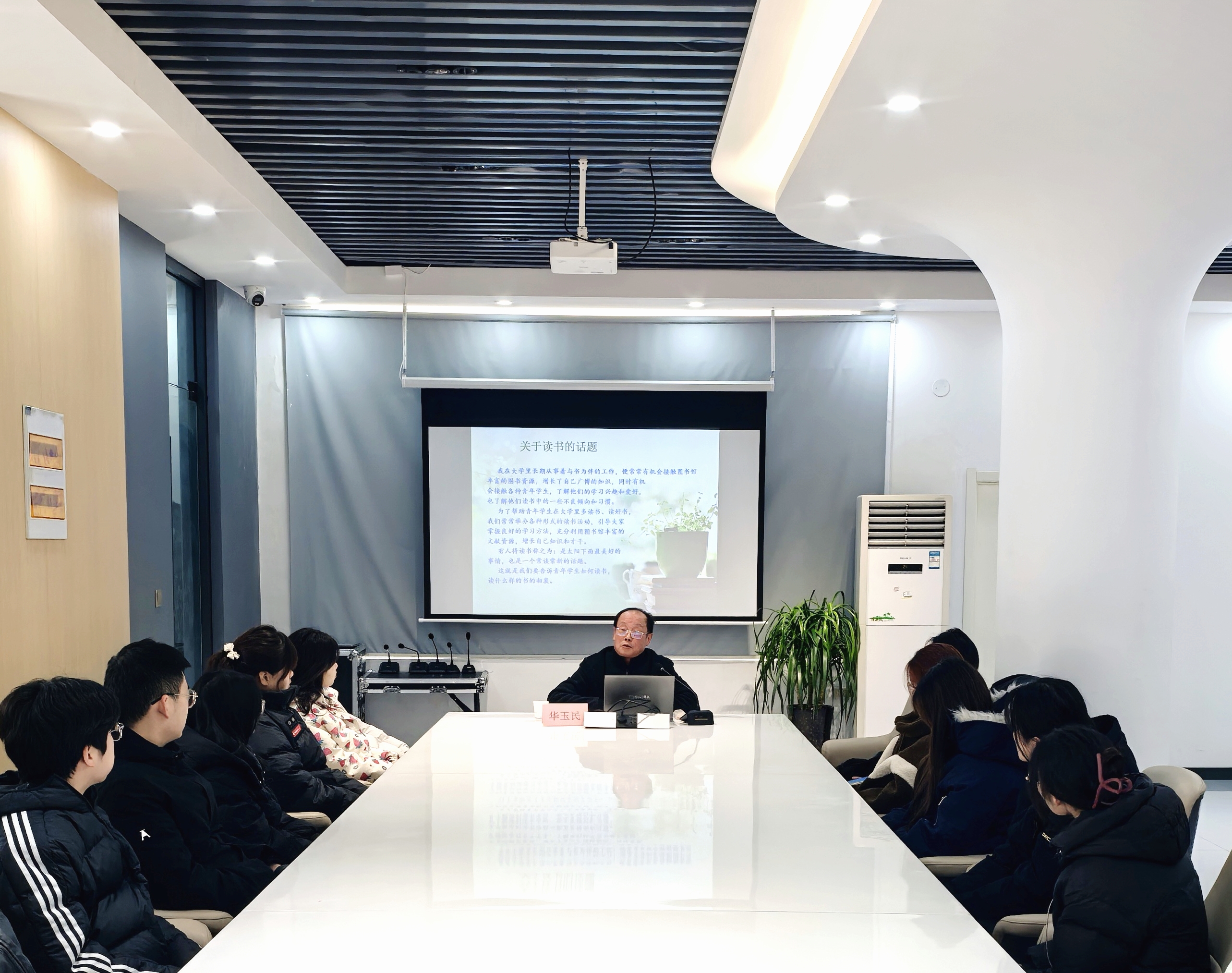 会议伊始,华玉民以书籍启迪智慧、滋养心灵的深远意义为切入点,深入阐述如何帮助大学生在纷繁复杂的时代浪潮中坚守精神阵地,明确人生方向。通过介绍经典著作的内涵与价值,结合当下社会多元文化碰撞的背景,引导学生思考阅读对于个人成长及应对外界挑战的重要性,鼓励同学们以书为友。在墨香中找寻自我提升的密码,以阅读构筑抵御纷扰的精神堡垒,用知识铺就通往开阔未来的坚实大道,开启充满希望与无限可能的新征程。