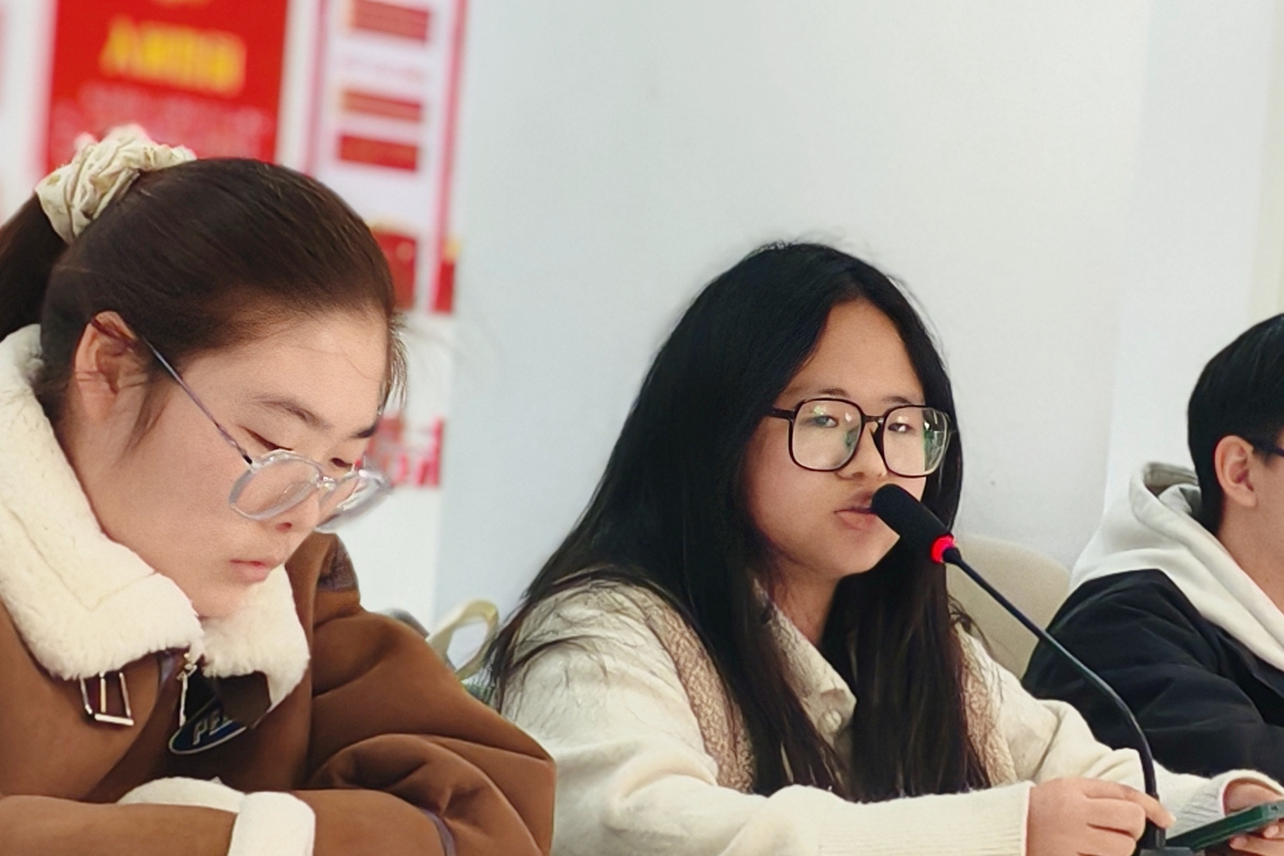 随后,会议进入学生代表发言环节。学生们踊跃提问,提出了涵盖社区设施、生活服务、文化活动等23个问题。有同学反映教学楼朗读学习教室缺少,希望增加更多朗读空间;也有同学提出宿舍公共设施维修维护有待加强。此外,关于社区举办更多活动、改善网络信号等提议也纷纷被提出。