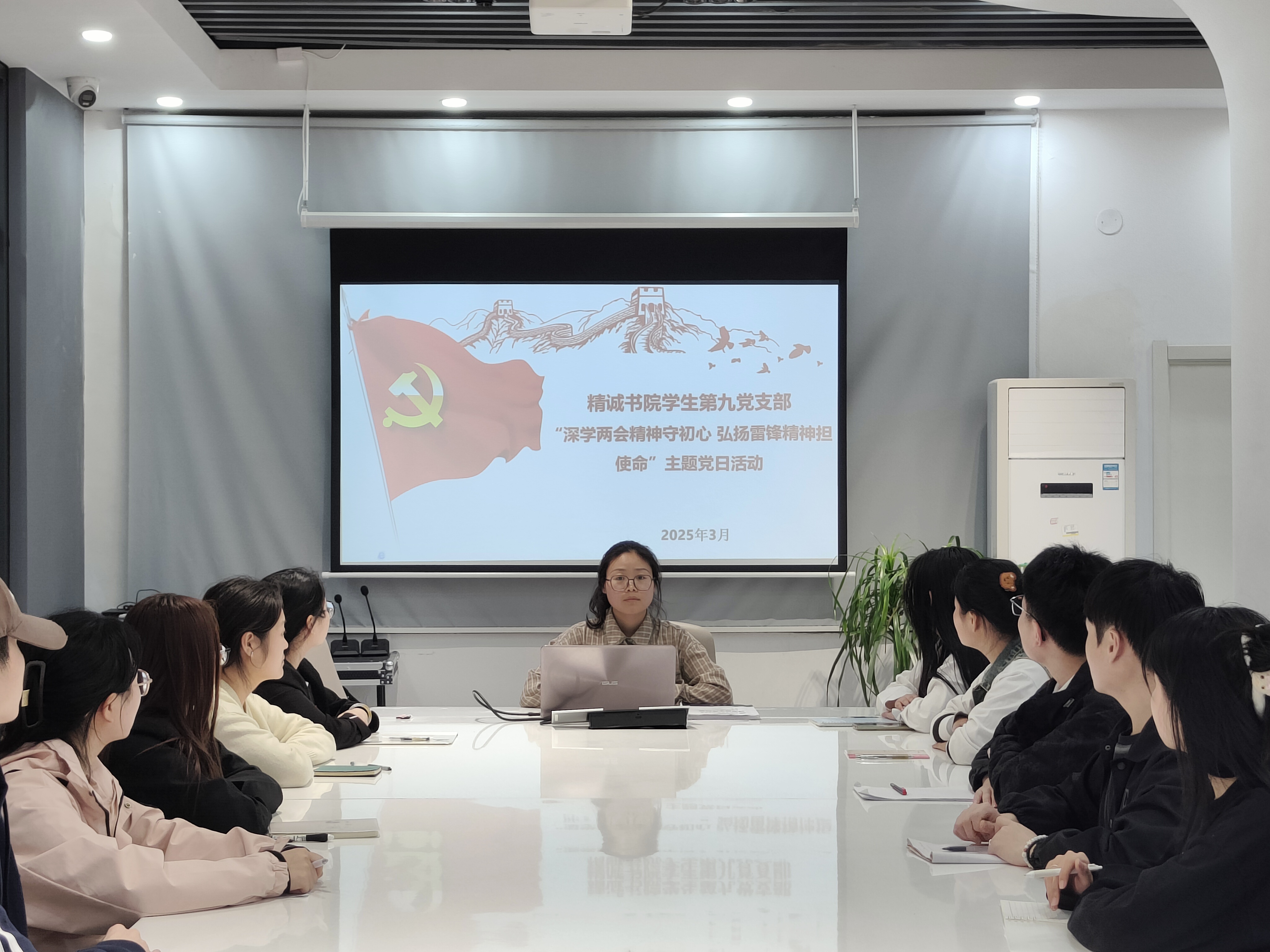 3月22日下午,精诚书院学生第九党支部在党团之家开展了3月份主题党日活动,活动由支部书记刘田莉主持。