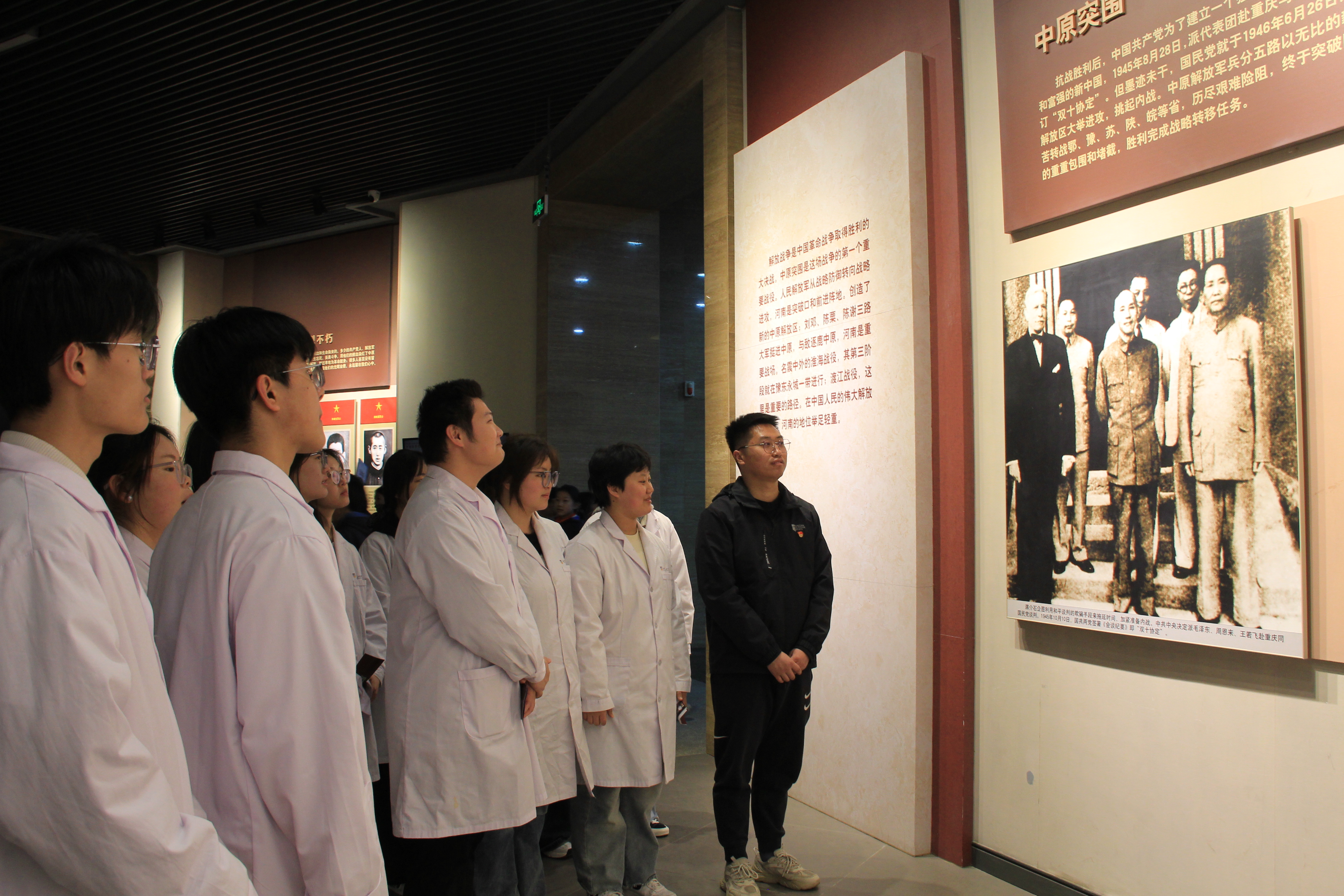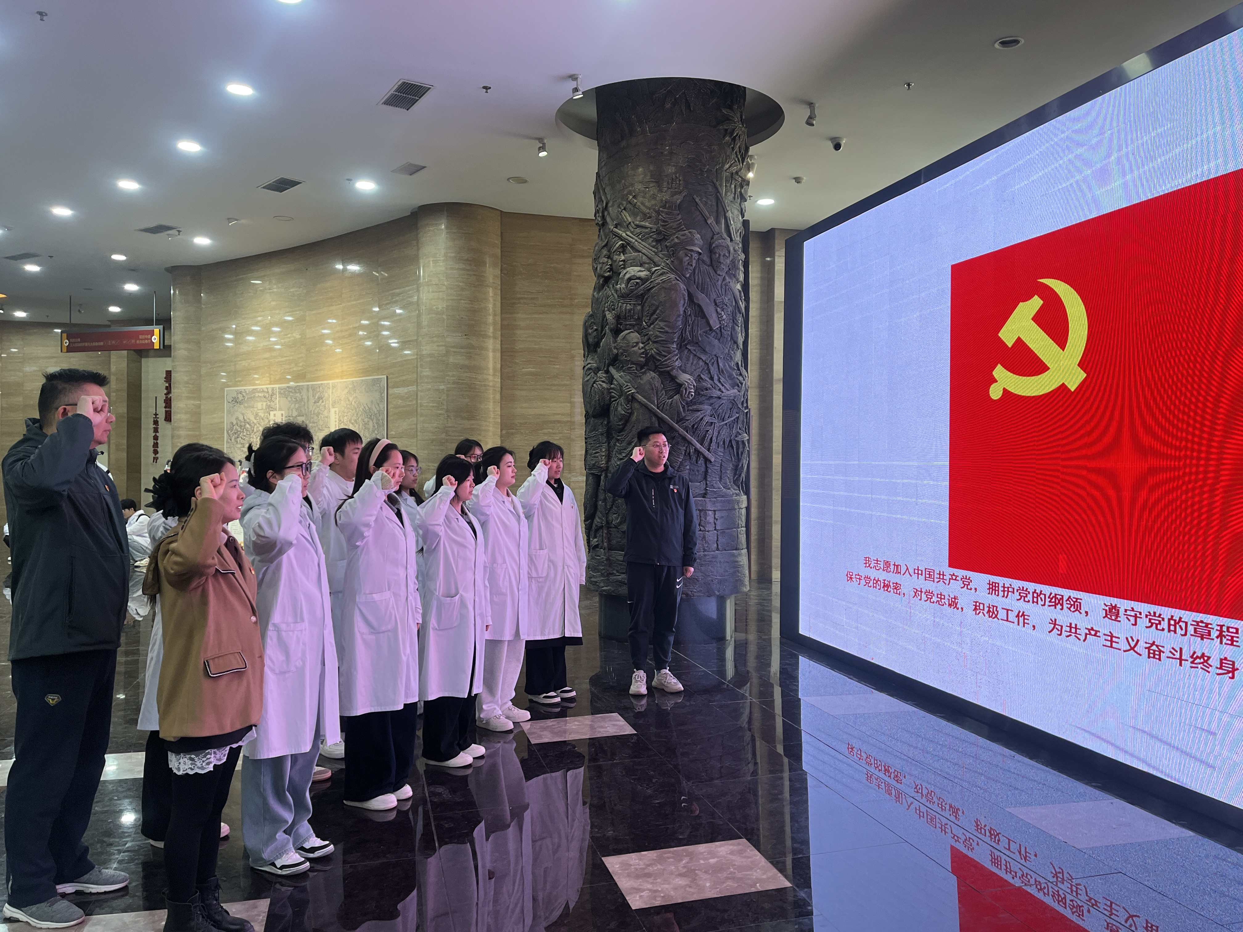 祭扫活动结束后,师生们怀着崇敬之情瞻仰了烈士墓碑,并有序参观了中原英烈纪念馆。在主题的教育展厅和烈士纪念厅,通过珍贵的历史文物、详实的文献资料和生动的多媒体展示,师生们回顾了党的光辉历史与发展历程,聆听了革命先烈们可歌可泣的英雄事迹。这些故事深深触动着每一位师生的心灵,让大家更加深刻地认识到今天的幸福生活来之不易。最后,党总支统战委员蒋万里带领全体党员面向党旗高举右拳,庄严宣誓,字字铿锵的入党誓词在中原英烈纪念馆内久久回荡。