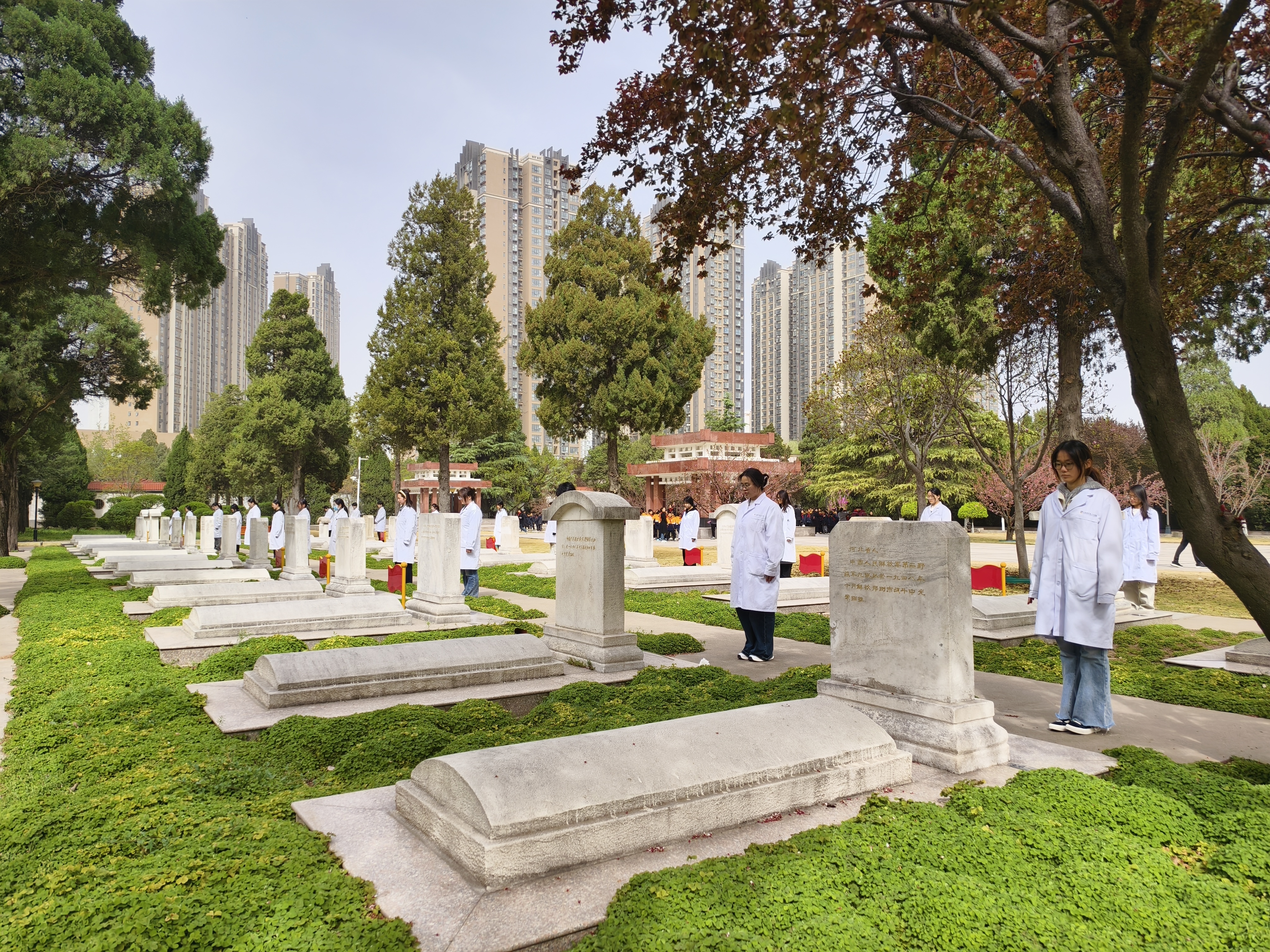 上午10点,全体师生抵达郑州市烈士陵园。在巍峨的纪念碑前,师生们整齐列队。现场庄严肃穆,气氛凝重,寄托着对先烈们的无尽追思。全体师生低头默哀,向那些为保家卫国、民族解放而英勇献身的先烈们致以最沉痛的哀悼,表达对革命英烈的崇高敬意与深切缅怀。