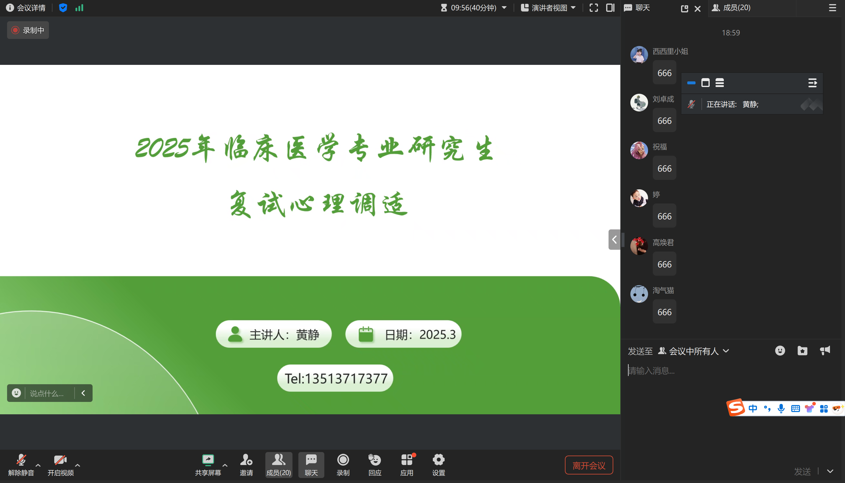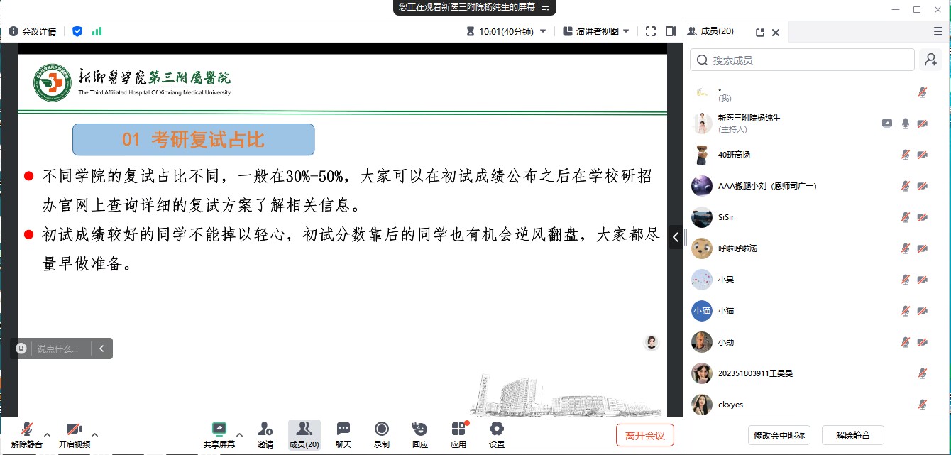 为帮助2025届考研学子科学规划复试方案、掌握应试技巧、提升核心竞争力,精诚书院于3月通过腾讯会议平台成功举办三场专题考研讲座,分别围绕复试策略、心理调适及临床医学专业调剂技巧展开,2025届全体考研学子积极参加。
